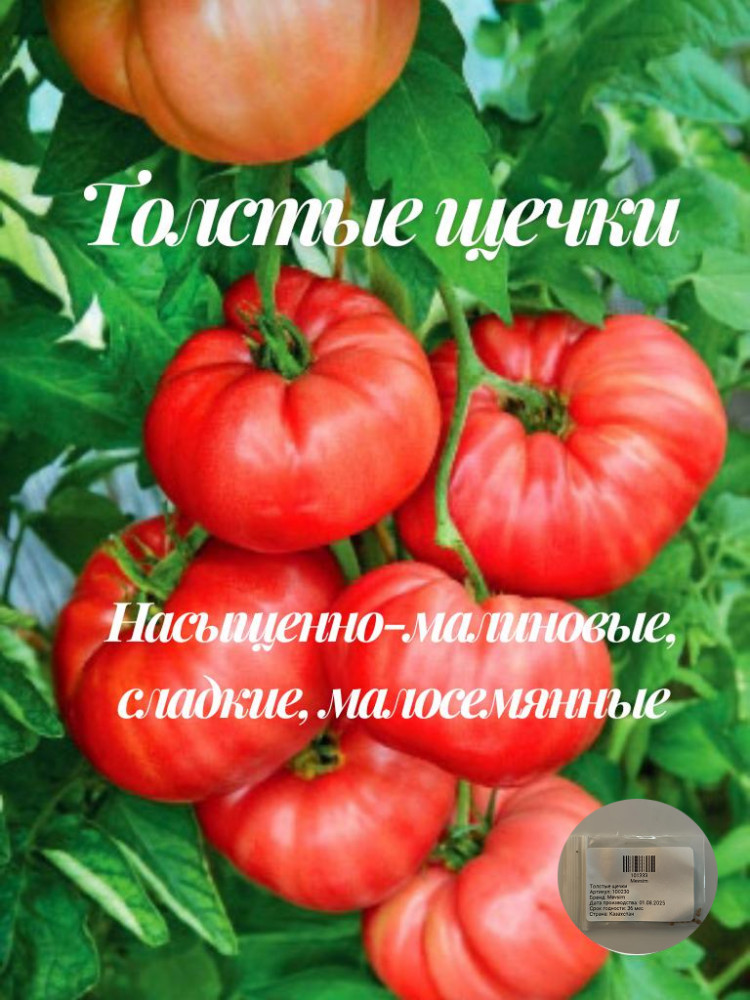 Томат «Толстые щечки» — это крупноплодный, среднеспелый индетерминантный сорт для закрытого грунта, достигающий 1.7–2.0 м в высоту. Плоды мясистые, плоско-округлые, весом 200–400 г (до 800 г при нормировании), обладают восхитительным сладким и сочным вкусом. Сорт подходит для салатов, соков и пасты, отличается высокой урожайностью (до 6 кг с куста), устойчивостью к болезням и отличной сохранностью плодов. |