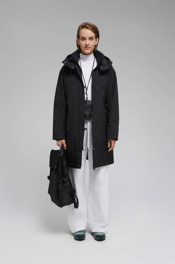 Утепленное пальто с несъемным капюшоном и застежкой на молнию с ветрозащитной планкой — идеальный выбор, чтобы чувствовать себя комфортно в переменчивую ветреную погоду. Внутри пальто высокотехнологичный искусственный утеплитель, который отличается легкостью, а благодаря особой структуре из множества тончайших волокон отлично согревает. Легкий и прочный подклад обработан антибактериальной и полиуретановой пропитками, которые предотвращают развитие микрофлоры и продлевают срок службы изделия. Свободный крой позволяет комфортно надевать под пальто теплые объемные вещи, а эластичные манжеты на резинке защищают от попадания ветра внутрь. Предусмотрены функциональные карманы.