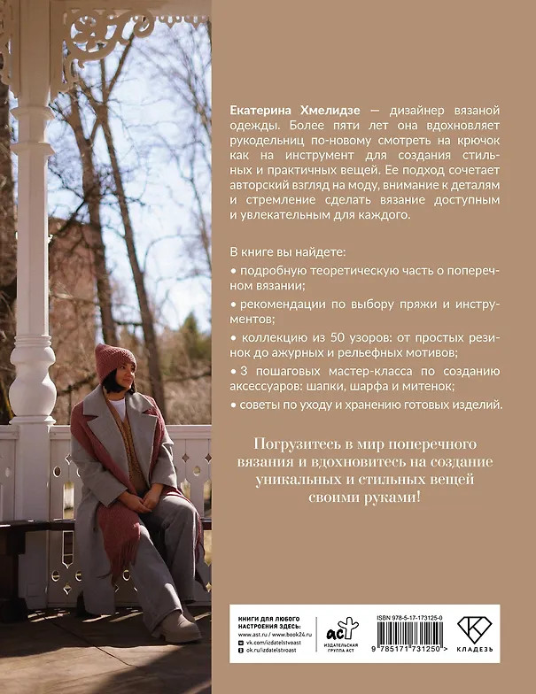 💳 Оплатить за товар можно при получении 🇰🇿 Есть бесплатная доставка по Казахстану от 1 дня 🎁 Копите бонусы с каждой покупки Серия: Тренды рукоделия Екатерина Хмелидзе — дизайнер вязаной одежды. Более пяти лет она вдохновляет рукодельниц по-новому смотреть на крючок как на инструмент для создания стильных и практичных вещей. Ее подход сочетает авторский взгляд на моду, внимание к деталям и стремление сделать вязание доступным и увлекательным для каждого. |
