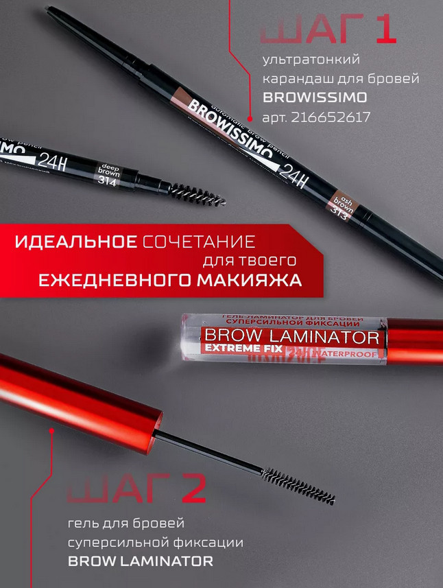 LuxVisage Brow Lamonator Extreme Fix 24h Waterproof — это прозрачный гель-ламинатор для бровей с экстремальной фиксацией до 24 часов. Средство обеспечивает эффект ламинирования, укладывает даже самые жёсткие и непослушные волоски. Благодаря водостойкой формуле гель не боится дождя, пота и влажности, надёжно удерживая форму бровей весь день. Упругая мини-щеточка позволяет точно и равномерно распределить продукт без комочков и склеивания. Гель быстро фиксируется, не оставляя белого налёта и не утяжеляя волоски. Придаёт аккуратный, ухоженный вид и может использоваться как самостоятельное средство. Подходит для всех типов бровей, включая густые и жёсткие. Содержит ухаживающие компоненты, которые укрепляют и смягчают волоски. Идеален для создания модного «зачёсанного» эффекта. |