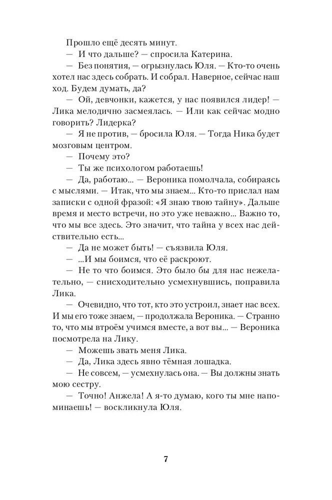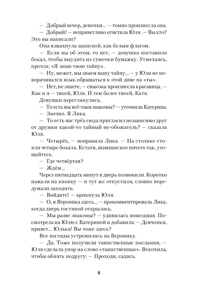 Четыре героини получают записку с одним и тем же содержанием: «Я знаю твою тайну». На первый взгляд между девушками ничего общего, но каждой из них есть что скрывать. Однажды они оказываются заперты в доме, из которого могут никогда не выбраться, и помощи ждать неоткуда. |