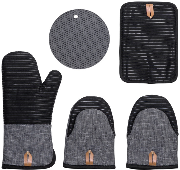 Этот набор кухонных прихваток «Heat Huggers» станет незаменимым помощником на вашей кухне. В него входят самые необходимые предметы для защиты ваших рук от ожогов и удобства в использовании: |