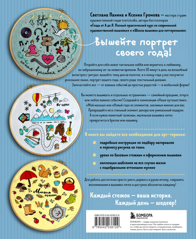 💳 Оплатить за товар можно при получении 🇰🇿 Есть бесплатная доставка по Казахстану от 1 дня 🎁 Копите бонусы с каждой покупки Серия: Русская школа вышивки Вышейте портрет своего года! Откройте для себя новое тактильное хобби или вернитесь к любимому, но заброшенному из-за нехватки времени. Всего 10 минут в день на волшебный антистресс-ритуал: вышейте тему дня на полотне, и к концу года у вас получится роскошное панно, портрет вашего года, своего рода текстильный дневник. Запечатлейте всё — от важных событий до простых радостей — в необычной форме! Вы можете вышивать и отдельные «странички» — семейный праздник, отпуск или любое важное событие! Создавайте композиции «Наше путешествие», «Мой малыш» или «Новый год» из элементов, значимых именно для вас. Превращайте их в стильный элемент декора или уникальный подарок. А если нужен памятный талисман, маленькая вышивка легко превратится в брелок или нашивку. |
