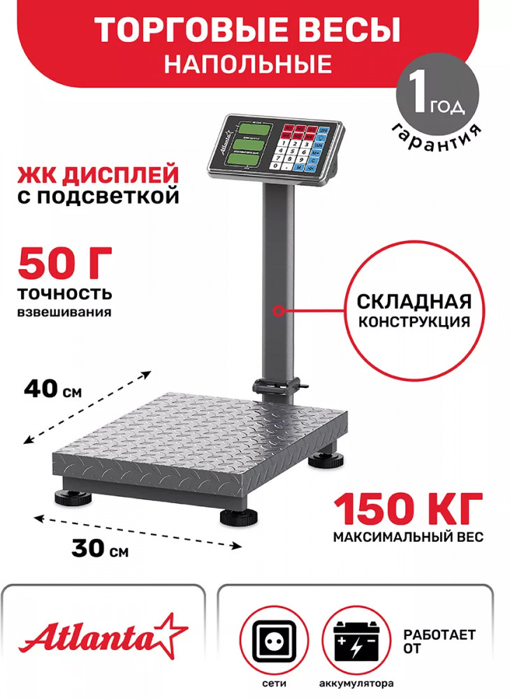 Atlanta Весы торговые электронные напольные ATH-6114новинка -30%