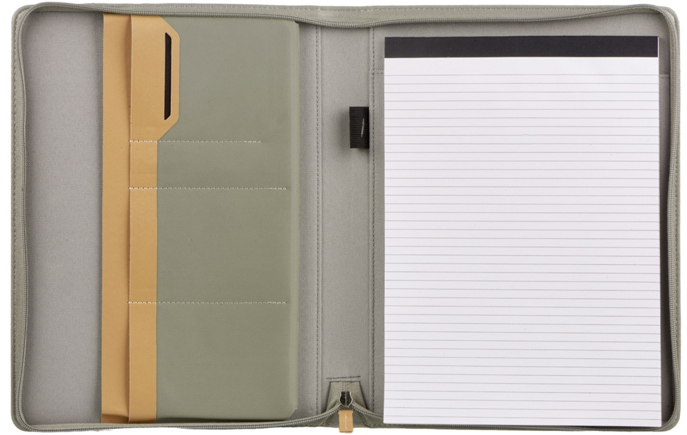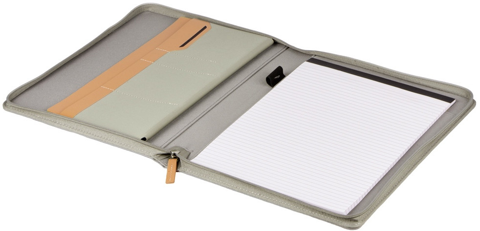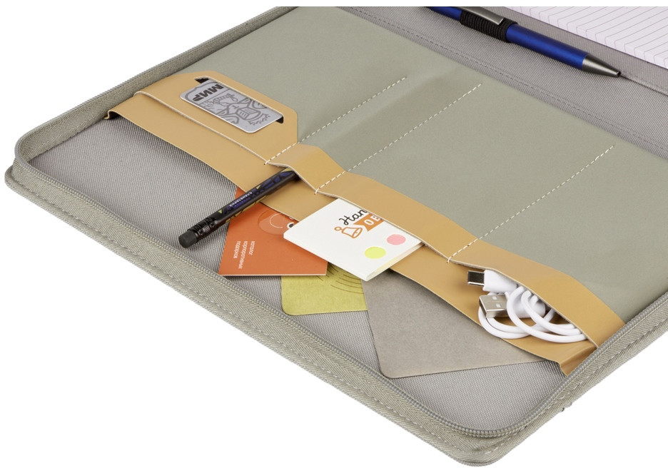 Папка-портфолио «Harvey» от Lettertone — незаменимый органайзер, который поможет держать все нужные вещи под рукой. Обложка Harvey выполнена из переработанного пластика (RPET). Внутри папки 40 листов FSC бумаги плотностью 80г/м2, изготовленной с соблюдением экологических норм, на обложке — карман для визиток или бумаг. Также есть петля для ручки и карманы для телефона, проводов, банковских карточек и/или визиток и даже для планшета. |