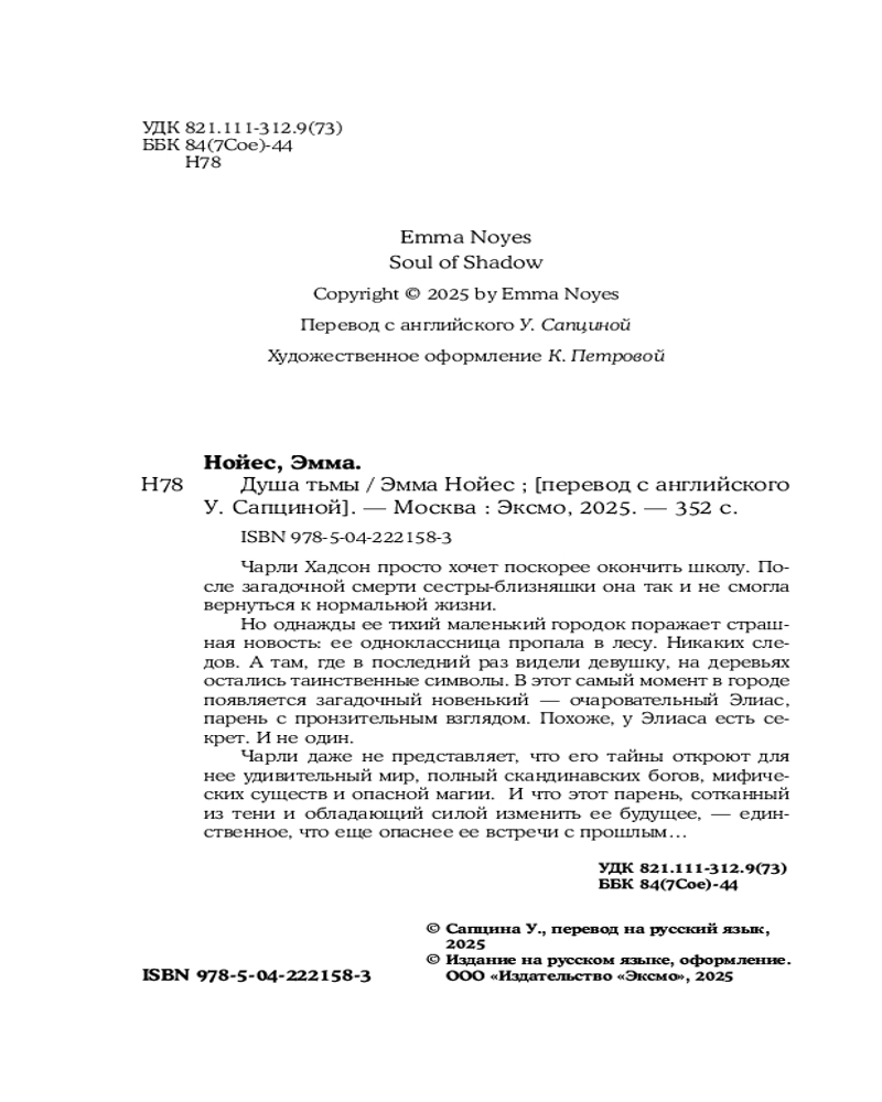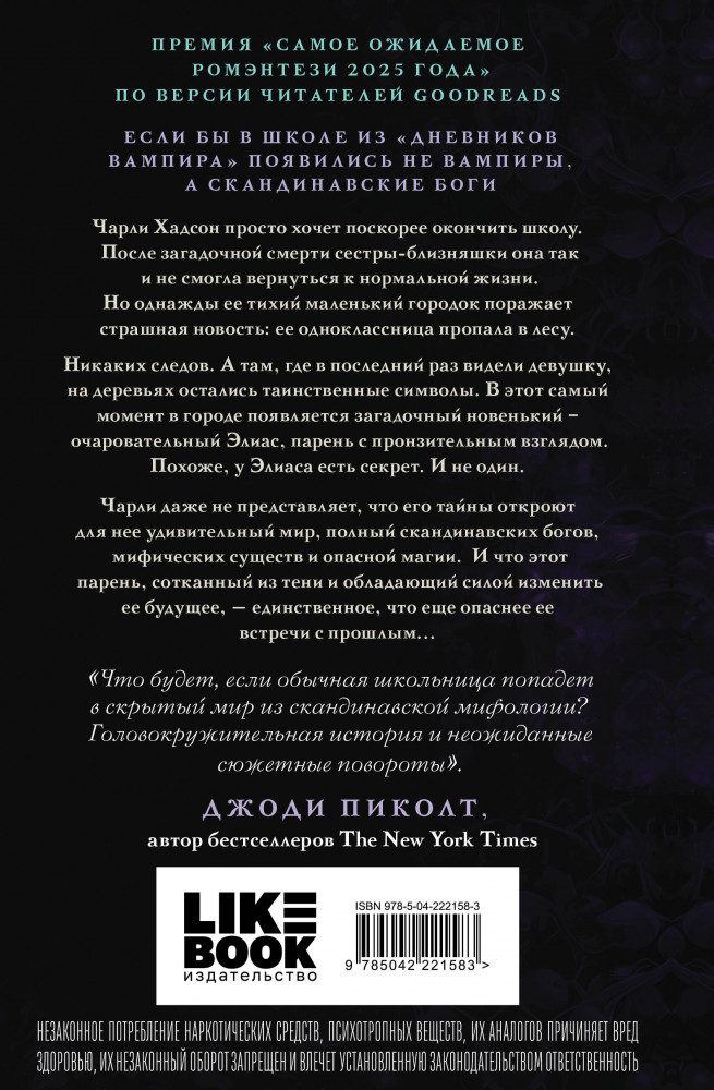 💳 Оплатить за товар можно при получении 🇰🇿 Есть бесплатная доставка по Казахстану от 1 дня 🎁 Копите бонусы с каждой покупки Серия: Young Adult. Сканди Love. Ромэнтези Чарли Хадсон просто хочет поскорее окончить школу. После загадочной смерти сестры-близняшки она так и не смогла вернуться к нормальной жизни. Но однажды ее тихий маленький городок поражает страшная новость: ее одноклассница пропала в лесу. Никаких следов. А там, где в последний раз видели девушку, на деревьях остались таинственные символы. В этот самый момент в городе появляется загадочный новенький — очаровательный Элиас, парень с пронзительным взглядом. Похоже, у Элиаса есть секрет. И не один. |