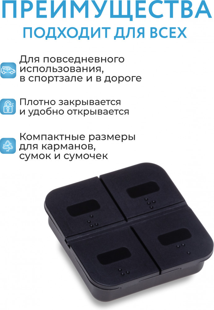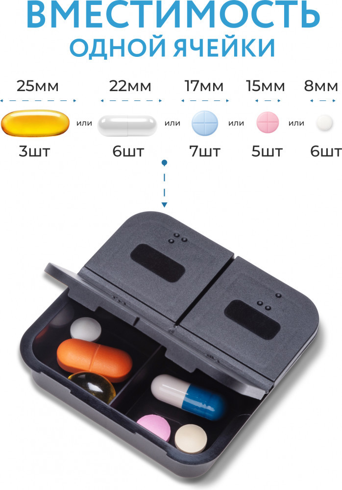 💳 Оплатить за товар можно при получении 🇰🇿 Есть бесплатная доставка по Казахстану от 1 дня 🎁 Копите бонусы с каждой покупки Таблетница на один день от Таблетон — ваш надежный помощник в поддержании здоровья и самочувствия. Эта компактная и удобная таблетница с четырьмя отделениями позволит вам легко организовать прием лекарств в течение всего дня. Просто разложите таблетки по отделениям, соответствующим времени приема, и больше не волнуйтесь о пропущенных дозах. Изготовленная из прочного и безопасного полипропилена, таблетница Таблетон прослужит вам долго, сохраняя свой безупречный внешний вид. Ее стильный черный цвет гармонично впишется в любой интерьер, а компактные размеры позволят вам взять ее с собой куда угодно. |