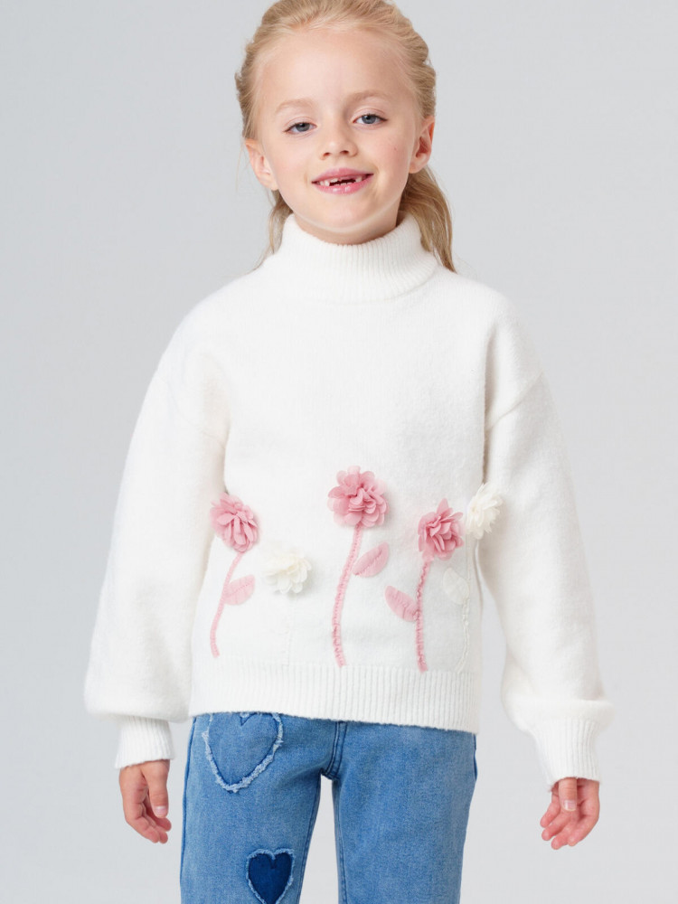 Детский белый трикотажный вязаный свитер для девочки от PlayToday — модный и практичный выбор для детского сада, прогулок и повседневной носки. Этот теплый детский свитер для девочки выполнен из мягкого трикотажа с вискозой, приятного к телу и безопасного для кожи ребёнка. Декор в виде объёмных 3D-цветов делает модель нарядной и подходит как для будней, так и для праздников. Белый свитер для девочки от PlayToday легко комбинировать с джинсами, юбкой или брюками. Для детского сада идеально подходит в комплекте с базовыми трикотажными брюками. В прохладное время надевайте под жилет или демисезонную куртку PlayToday. Такой детский свитер с цветами станет акцентом праздничного наряда — для утренников, походов в гости или фотосессий. Подходит для детского сада, прогулок на свежем воздухе, игр дома и праздничных мероприятий. Белый свитер с цветами универсален и впишется в повседневный и нарядный гардероб. Модный белый свитер в детский сад для девочки от PlayToday — уютная и стильная вещь, которая станет любимой в гардеробе.