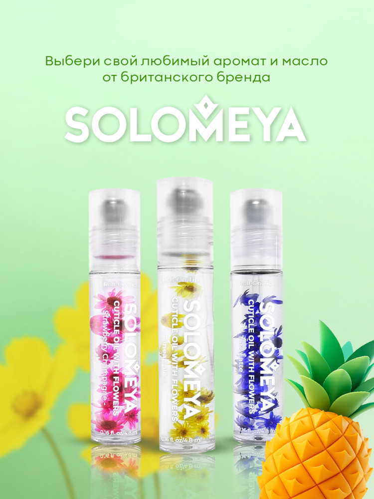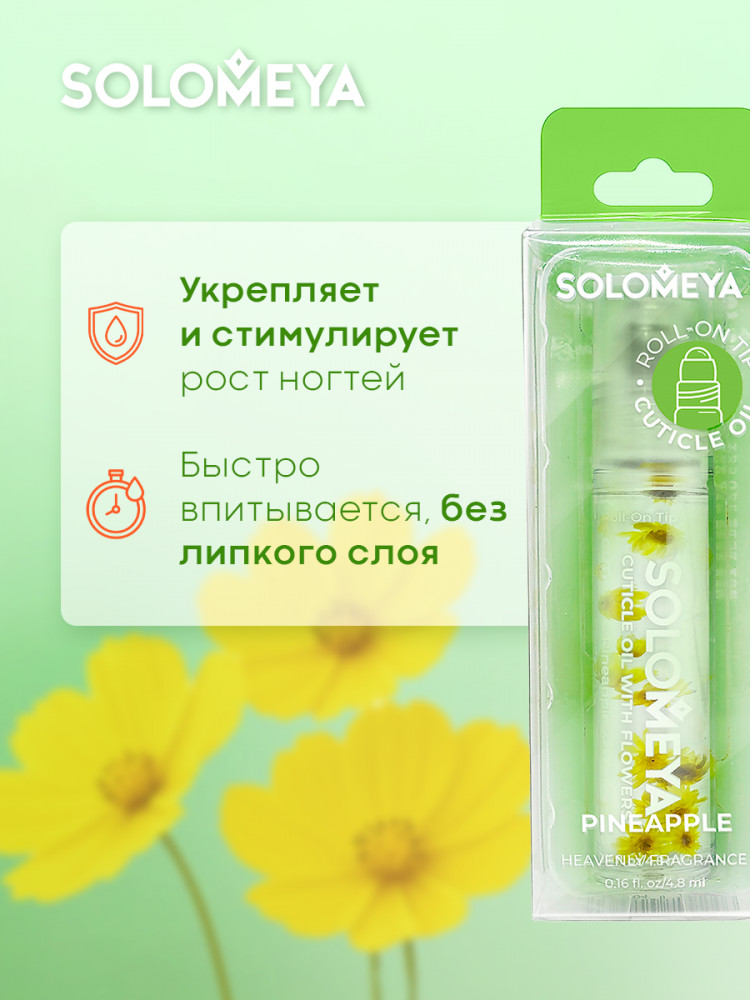 Solomeya Масло для кутикулы с роликовым аппликатором и цветами «Pineapple. Сочный ананас»