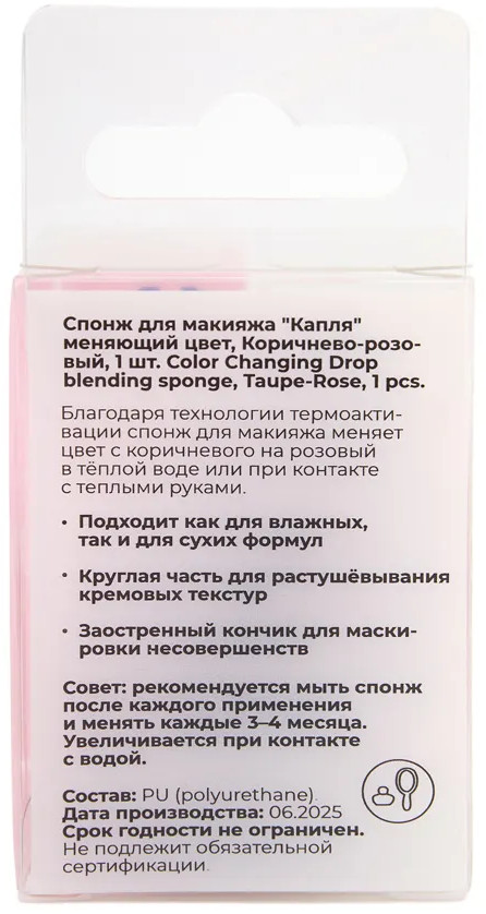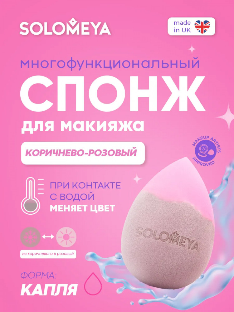 Solomeya Спонж для макияжа меняющий цвет «Color Changing Drop blending sponge»