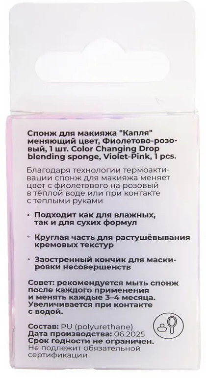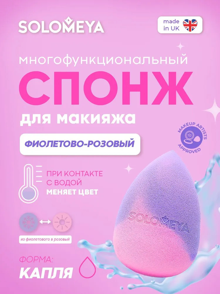 Solomeya Спонж для макияжа меняющий цвет «Color Changing Drop blending sponge»