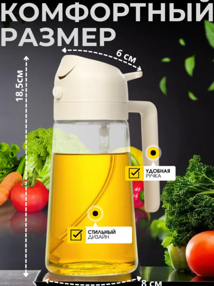 Дозатор для масла с распылителем — это удобное приспособление для кухни, которое поможет вам контролировать количество и равномерность распределения масла при приготовлении различных блюд. Этот маслораспылитель является идеальным аксессуаром для дома и кухни, так как позволяет точно дозировать необходимое количество растительного или оливкового масла, не перебрав или недодержав его в готовке. |