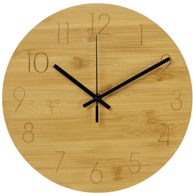 Настенные часы из бамбука толщиной 8 мм станут отличным декором для офиса или дома в эко-стиле. На часы можно нанести логотип методом гравировки. Размеры — 30×30×0,8 см, с механизмом толщина 2,7 см. |