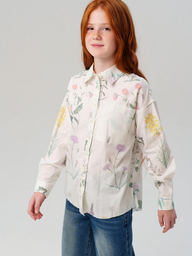 Стильная текстильная рубашка оверсайз для девочки подростка из 100% хлопка от бренда PlayToday.