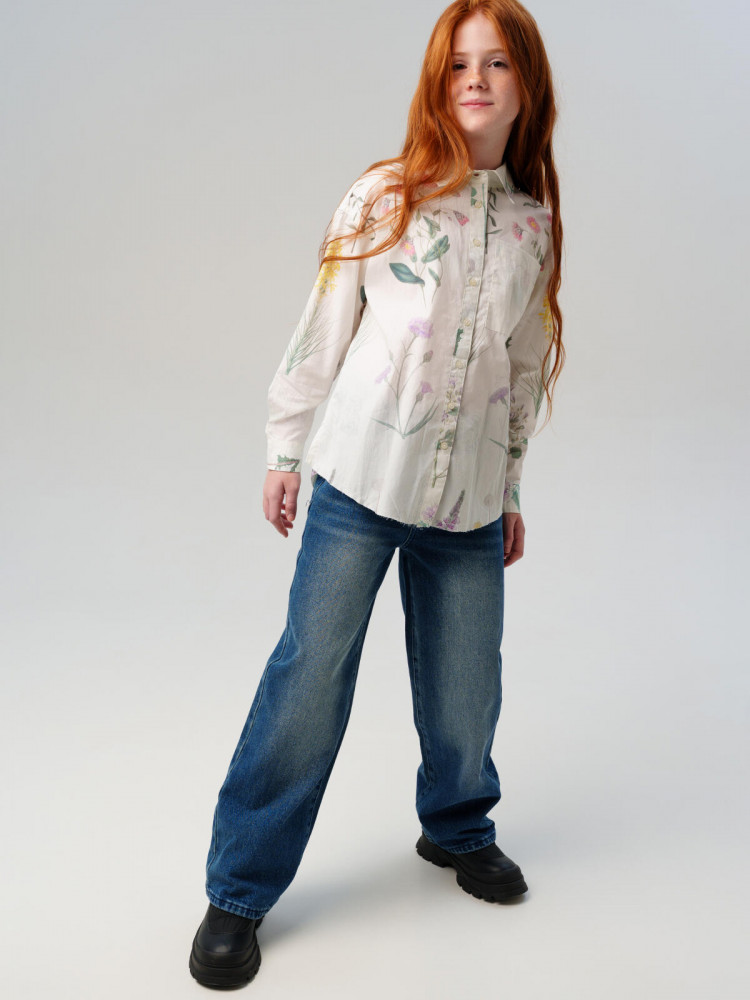 Носите рубашку навыпуск с джинсами, шортами или легинсами. Можно надеть поверх топа или футболки, оставив её расстёгнутой. Для завершённого образа добавьте кеды или балетки, рюкзак и аксессуары. Подходит для девочек от 11 до 17 лет.