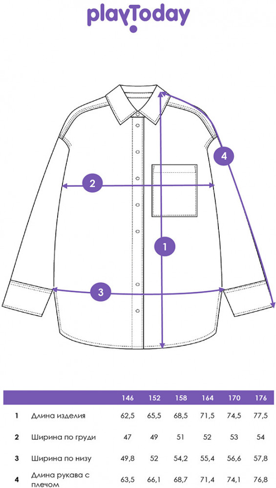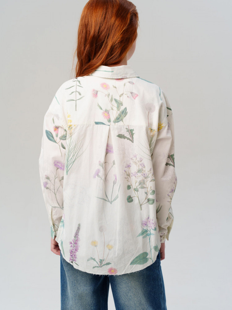 Стильная текстильная рубашка оверсайз для девочки подростка из 100% хлопка от бренда PlayToday.