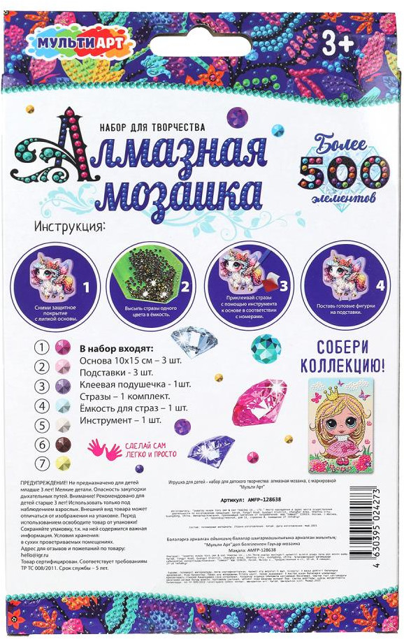 Multi Art Мозаика кристальная на подставке «Принцесса и единорог»