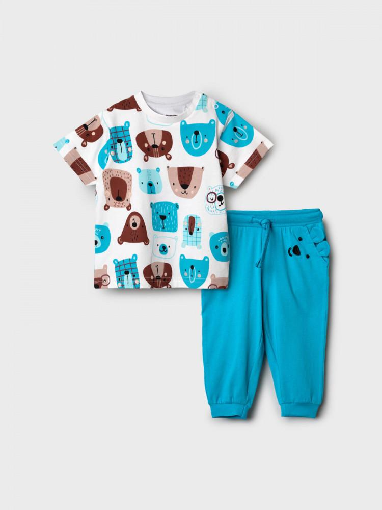 Детский трикотажный комплект для мальчика от PlayToday — удобный, яркий и полный милых деталей. В детском костюме малышу будет комфортно в садике, на прогулке и дома. Лёгкая футболка и брюки с декором превращают комплект в любимую вещь ребёнка. Преимущества модели: застёжка на кнопки на плече — быстро и удобно переодеть малыша; яркий принт — создаёт настроение и выглядит стильно; пояс на резинке со шнурком — регулируется и не давит; два боковых и один задний карман — удобно и практично; декор: вышивка с мордочкой мишки и объёмные ушки на кармане — милый акцент, который понравится детям; манжеты по низу брюк — фиксируют штанины, не задираются при движении. Этот детский комплект футболка + брюки выполнен из мягкого трикотажа, который приятен к телу и сохраняет форму после стирок. Он создан для активных игр и максимального комфорта малыша.