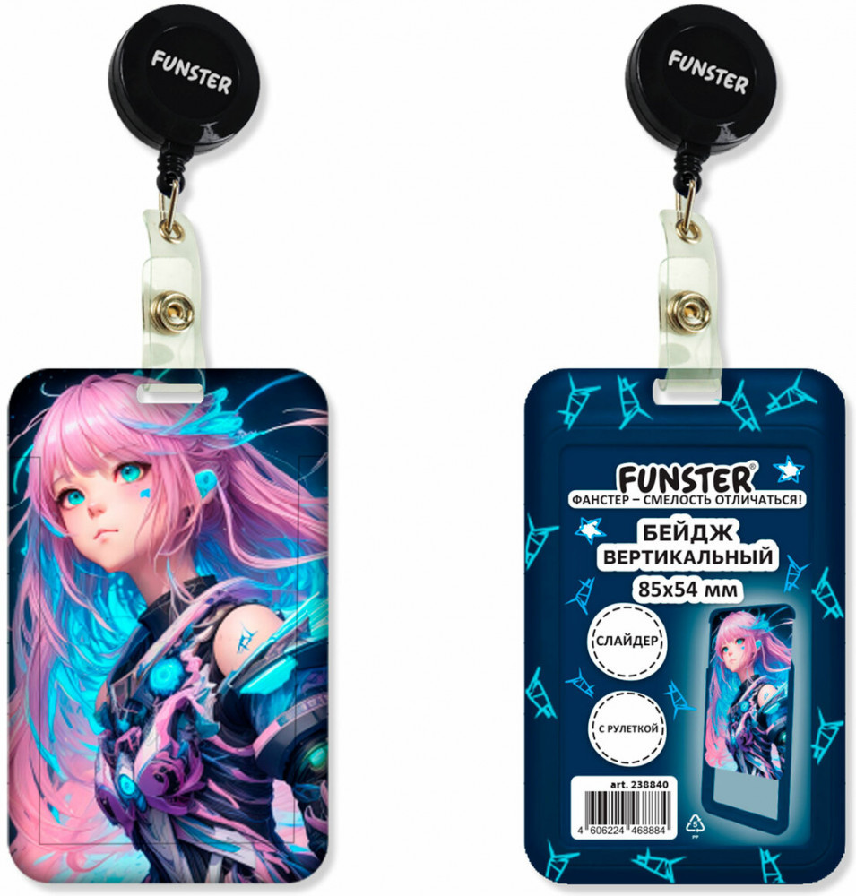 Вертикальный бейдж с лентой Funster для именной карточки предназначен для идентификации сотрудников в компаниях, подойдет для школьного пропуска или проездного. Бейдж в формфакторе «слайдер» с держателем рулеткой 70 см. Изготовлен из жесткого пластика, гарантирующего долгий срок службы и защищающего от внешних воздействий Вашу именную карту. Идеально подойдёт для чувствительных к механическим повреждениям магнитных карт и пропусков. Рисунок на бейдже нанесен с применением 3D печати, что создает приятный тактильно опыт использования, а веселый дизайн станет проводником через суровые тяготы бытия. Размер вкладыша 85×54 мм. Обратная сторона вкладыша подготовлена под персонализацию — фото, ФИО, должность и название компании.