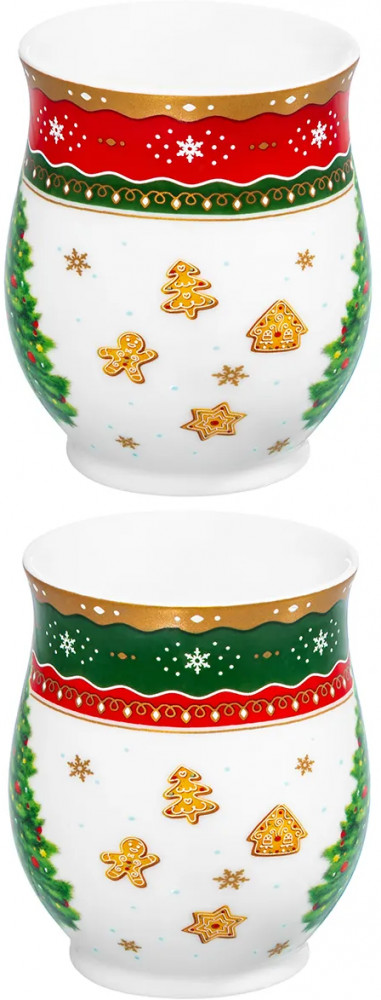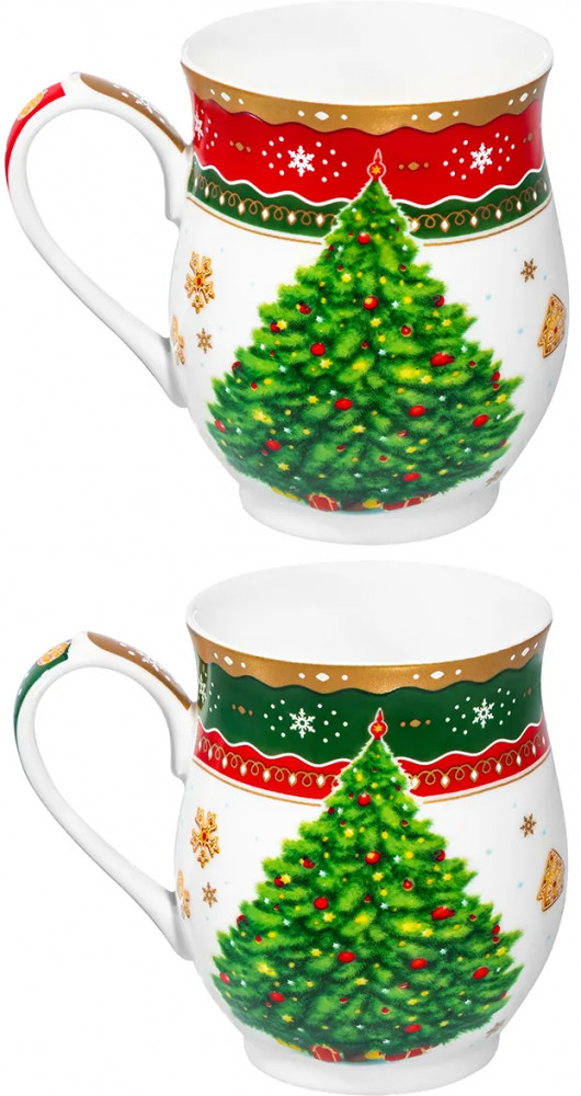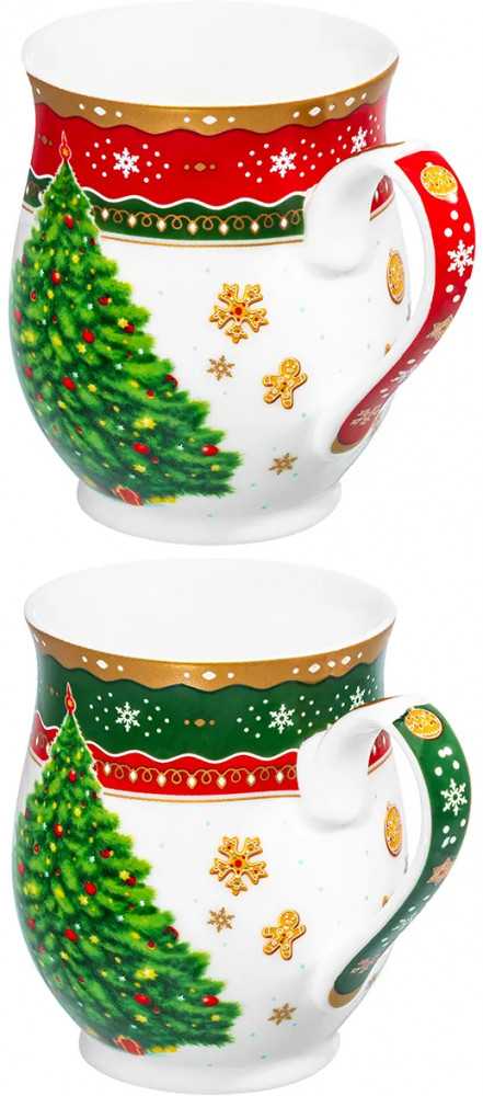 Набор 2 кружек из серии «Новогодняя ёлка» от Elan Gallery предназначен для эстетичной сервировки вашего стола. Размер каждой кружечки — 11,5×8,5×10 см, объём — 350 мл. Выполнены из фарфора нового поколения new bone china, сочетающего в себе изящность и высокую прочность. Такие изделия легко отмываются, поэтому сохраняют привлекательный вид и практичны в использовании. Плотная структура материала позволяет посуде дольше сохранять температуру напитков. От классического костяного фарфора new bone china отличается большей экологичностью в производстве. Поверхность украшена широкой цветной окантовкой, изображением пушистой наряженной ёлочки, узором из снежинок и имбирных пряников. Кофейные бокалы помогут вам провести множество приятных завтраков с капучино и латте, а также уютные чайные вечера с конфетами, вафлями, другими десертами и сладостями.