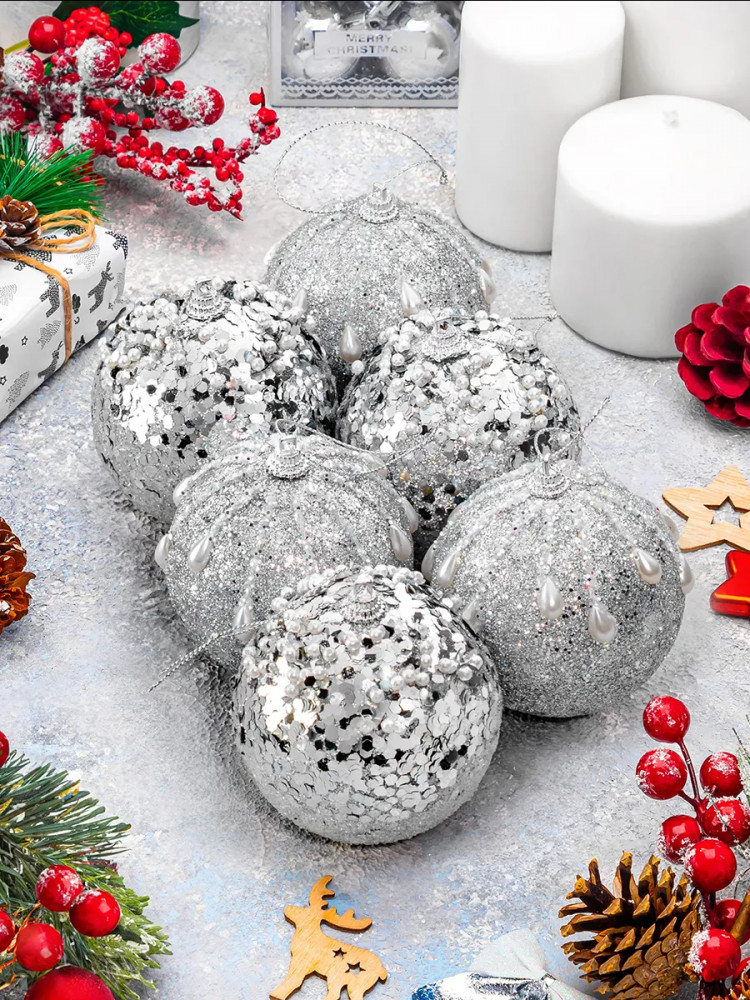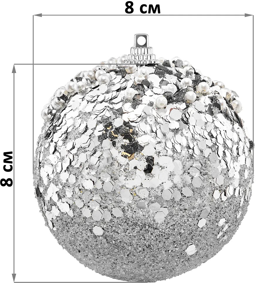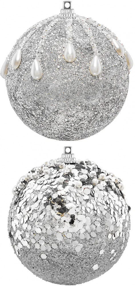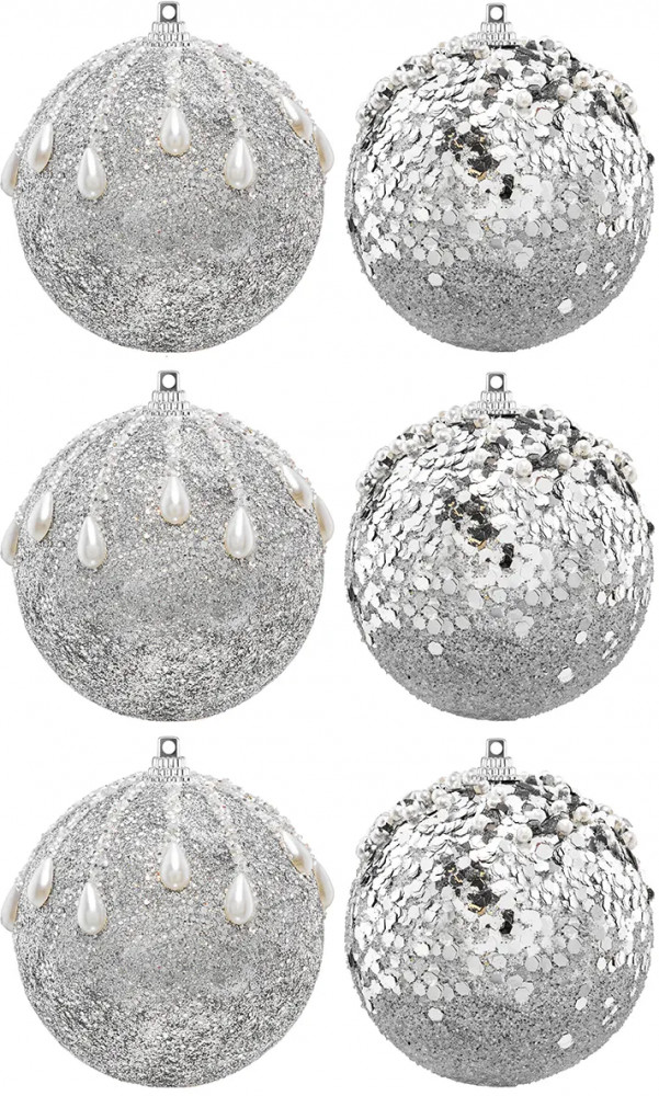 Набор 6 новогодних шаров от бренда Elan Gallery «Серебро с белым» украсит вашу ёлочку и создаст праздничную атмосферу для взрослых и детей! Выполнены из пенопласта. Шары украшены глиттером и декором из пластика, имитирующим жемчужины. Диаметр каждого блестящего шара — 8 см. Подвесные шарики серебристого цвета подойдут для использования в роли елочного украшения или интерьерного декора. Шары можно использовать для создания декоративных композиций и повесить на дверь, окно и живые ёлки во дворе. Каждый серебряный шарик имеет удобную петлю для подвешивания на веточку ёлки или стену.