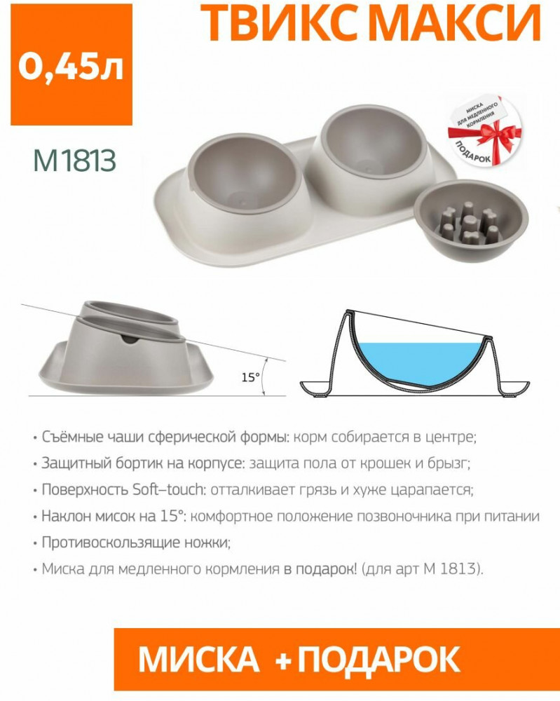 IDEA Миска для животных двойная «Твикс Макси»