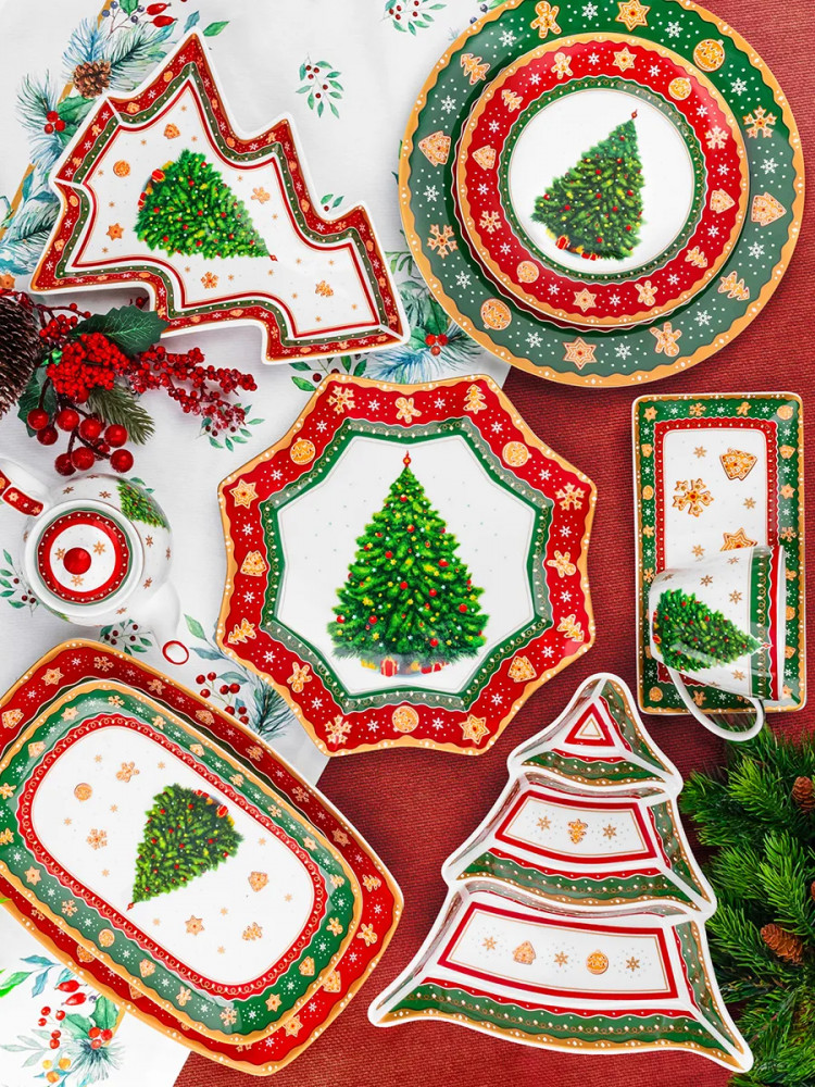 Каждое блюдце станет незаменимым помощником при сервировке завтрака, ужина или вторых блюд на обед. Эргономичная форма позволит разместить на них любую еду, от блинов до пасты. Фарфоровая посуда отличается от керамики повышенной плотностью. Фарфор не впитывает цвет продуктов и не деформируется от влаги, чему может быть подвержена керамическая посуда. Нарядный комплект можно использовать для сервировки стола как в будни, так и на праздник. Поставляется в яркой картонной коробке. Вам не придётся искать дополнительную подарочную упаковку, чтобы сделать сюрприз близким на праздник. Сервировочные блюда — хороший вариант подарка, они станут украшением кухни и праздничного стола. В серии вы найдёте все необходимое, чтобы встретить Новый год и Рождество в тёплом семейном кругу. В коллекции бренда Elan Gallery можно найти много красивого кухонного и столового инвентаря, товаров для дома, а также собрать оригинальный сервиз на свой вкус.