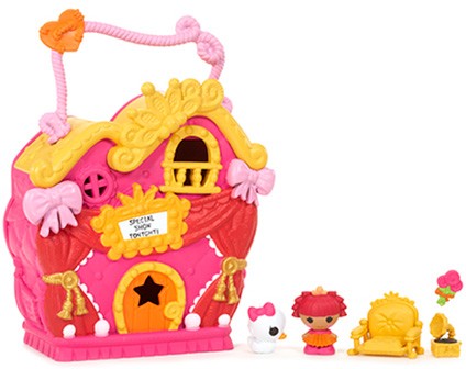 MGA Entertainment Игровой набор Lalaloopsy «Домик принцессы»В данный момент этот товар отсутствует в продаже. Возможно, у нас найдется аналогичный или похожий товар здесь. Серия: Lalaloopsy Малютки У домика есть ручка, благодаря которой его можно носить как чемоданчик на прогулку или в гости. Домик выступает в роли не только дома для куколки, но и в роли сцены для ее грандиозных шоу. Фасад дома украшен красным занавесом с розовыми бантами, а над входом расположилась большая вывеска с анонсом предстоящего выступления. Чтобы играть внутри домика, необходимо открыть заднюю крышку, повернув специальный замочек. Внутри домика два этажа, с комнатой на каждом из них. |