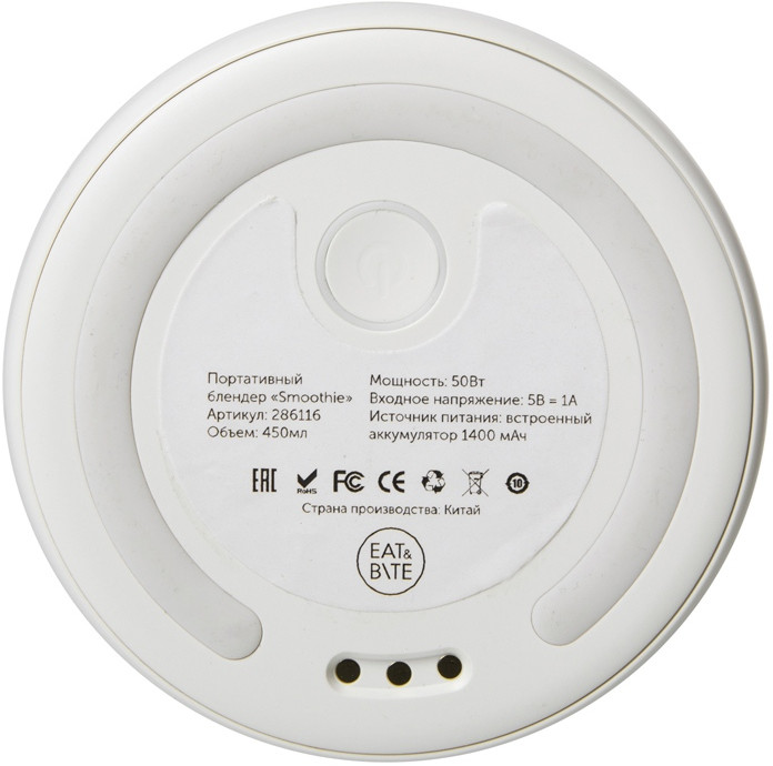 Eat & Bite Select Блендер портативный «Smoothie»В данный момент этот товар отсутствует в продаже. Возможно, у нас найдется аналогичный или похожий товар здесь. Портативный блендер «Smoothie» от Eat&Bite — идеальное решение для приготовления смузи, протеиновых коктейлей и других напитков в любом удобном месте! Работает без подключения к сети, заряжается от беспроводной зарядной станции, что позволяет взять его с собой в авто, путешествие, на работу или на пикник. Напиток / блюдо будут всегда свежими и с лёгкостью приготовлены за считанные секунды. |