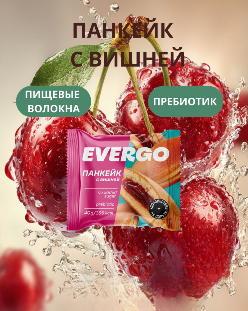 Мука пшеничная, яйца куриные, пищевые волокна (изомальтоолигосахарид), вода, агент влагоудерживающий (глицерин), фруктоза, вишня, пребиотик олигофруктоза, масло подсолнечное, крахмал пшеничный, сыворотка молочная сухая, соль, разрыхлитель (гидрокарбонат натрия), регулятор кислотности (лимонная кислота), эмульгаторы (эфиры глицерина и уксусной и жирных кислот, эфиры глицерина и молочной и жирных кислот), молоко обезжиренное сухое, ароматизаторы, консервант (сорбат калия), загустители (модифицированный крахмал, пектин), регуляторы кислотности (лимонная кислота и цитрат натрия), красители (антоцианы, концентрированный сок черной смородины). Продукт производится на предприятии, где используются орехи, арахис и кунжут.