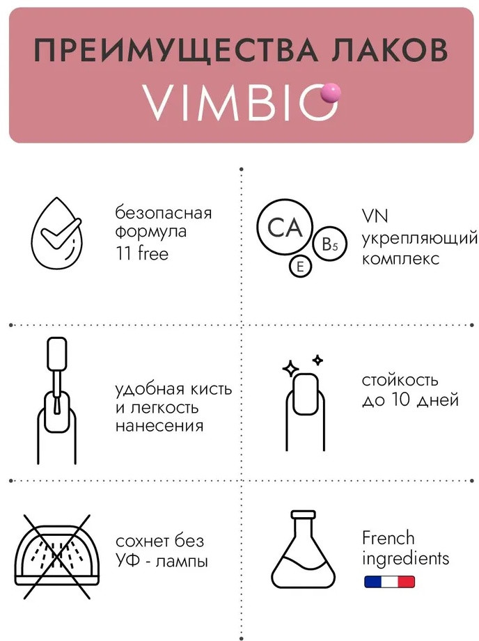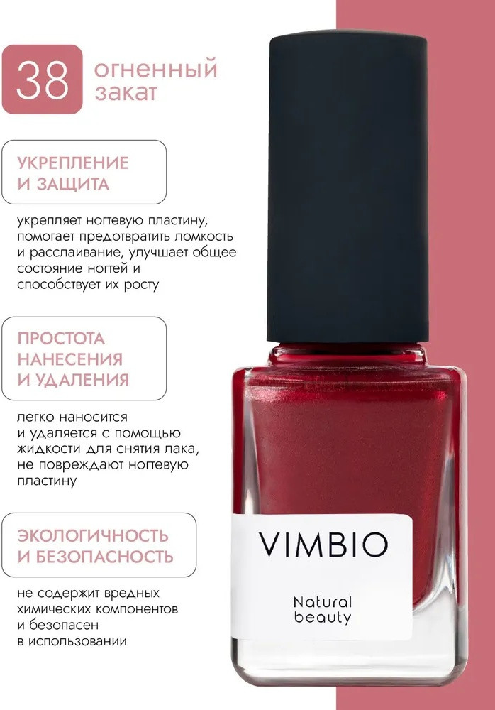 VimBio Лак для ногтей перламутровый укрепляющий, оттенок 38 Огненный закат