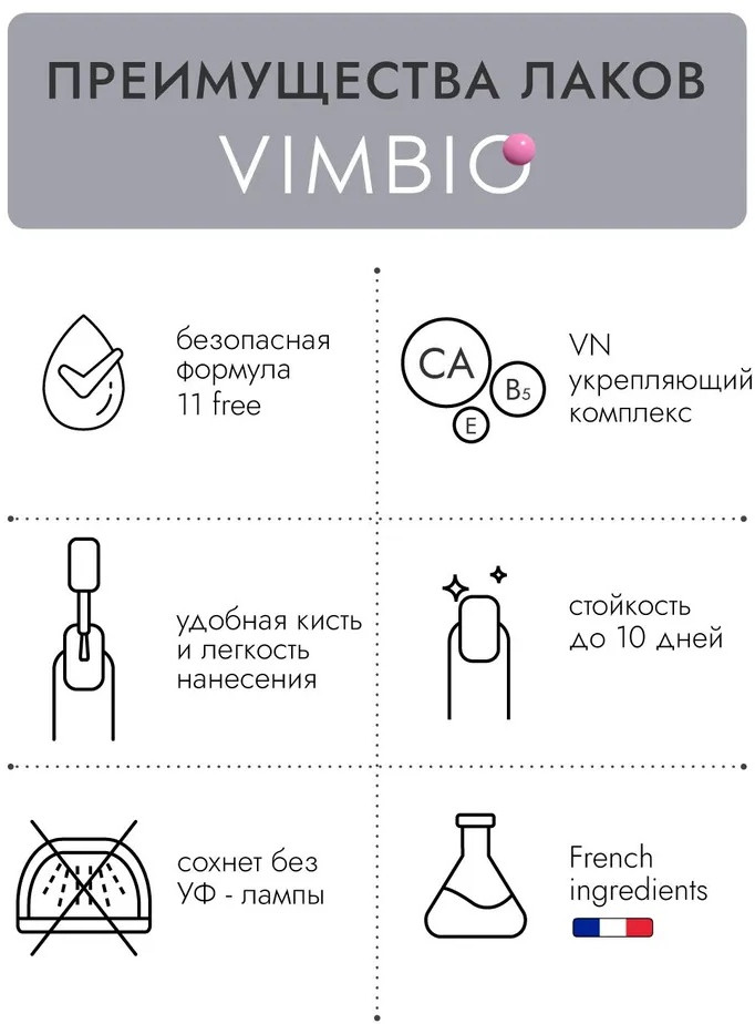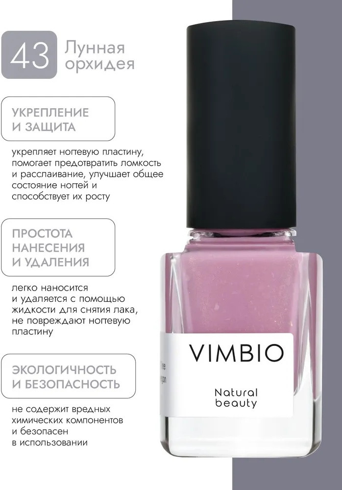 VimBio Лак для ногтей поталью укрепляющий, оттенок 43 Лунная орхидея