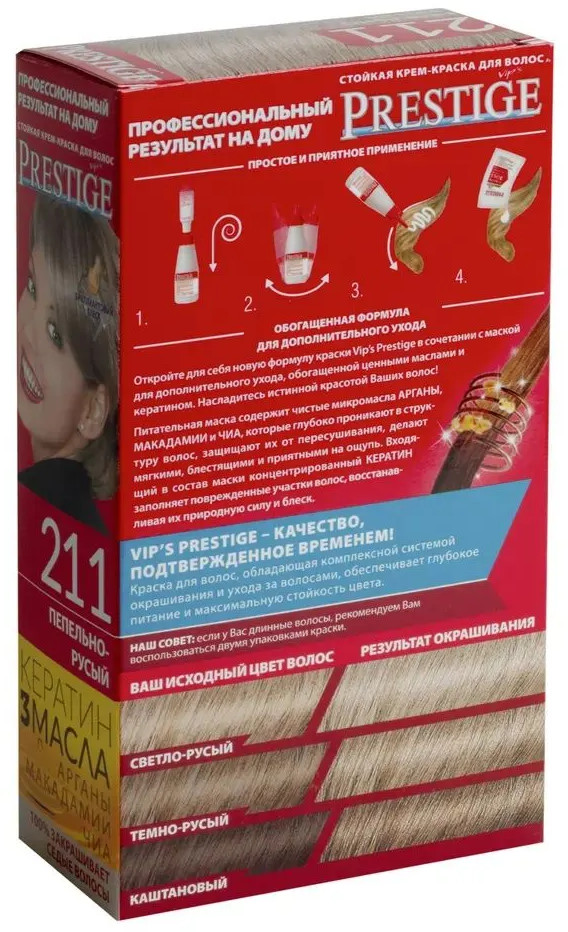 Prestige Стойкая крем-краска для волос, оттенок 211 Пепельно-русый