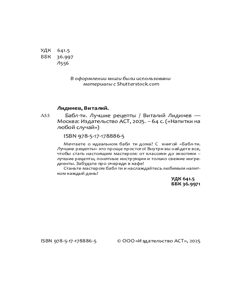 Серия: Напитки на любой случай Мечтаете о идеальном бабл ти дома? С книгой «Бабл-ти. Лучшие рецепты» это проще простого! Внутри вы найдете все, чтобы стать настоящим мастером: от классики до экзотики — лучшие рецепты, понятные инструкции и только свежие ингредиенты. Забудьте про очереди в кафе! Станьте мастером бабл ти и наслаждайтесь любимым напитком каждый день! |