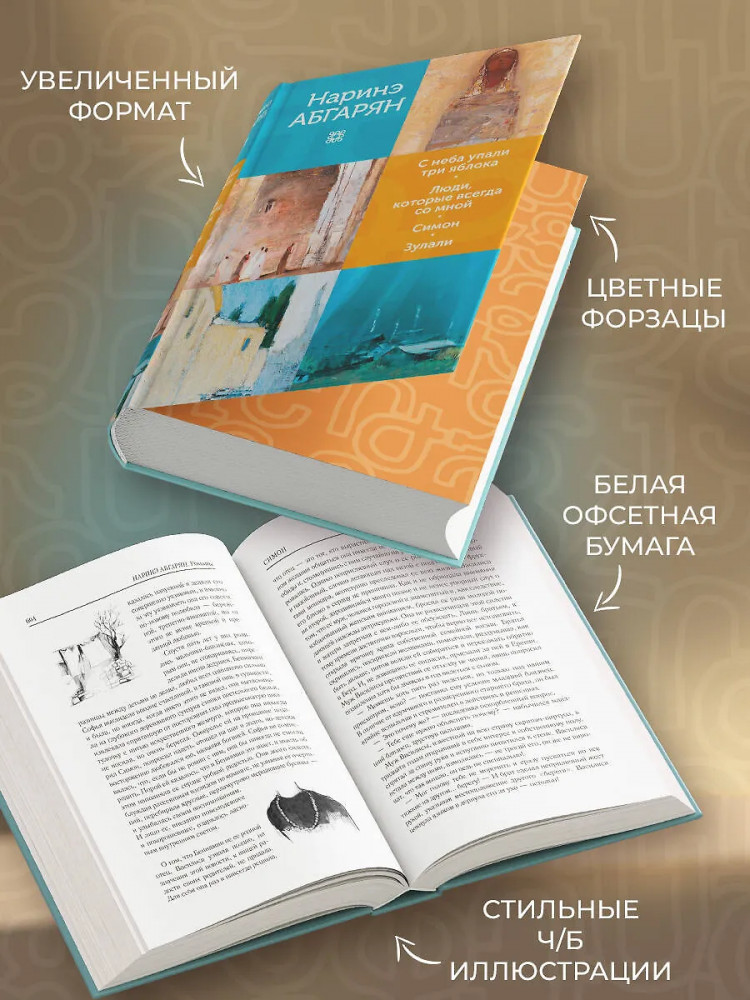 💳 Оплатить за товар можно при получении 🇰🇿 Есть бесплатная доставка по Казахстану от 1 дня 🎁 Копите бонусы с каждой покупки Серия: Абгарян. Подарочное издание В издание вошли три романа Наринэ Абгарян: «С неба упали три яблока», «Люди, которые всегда со мной» и «Симон», а также повести и рассказы. |