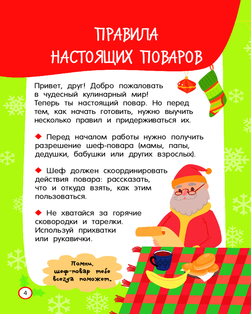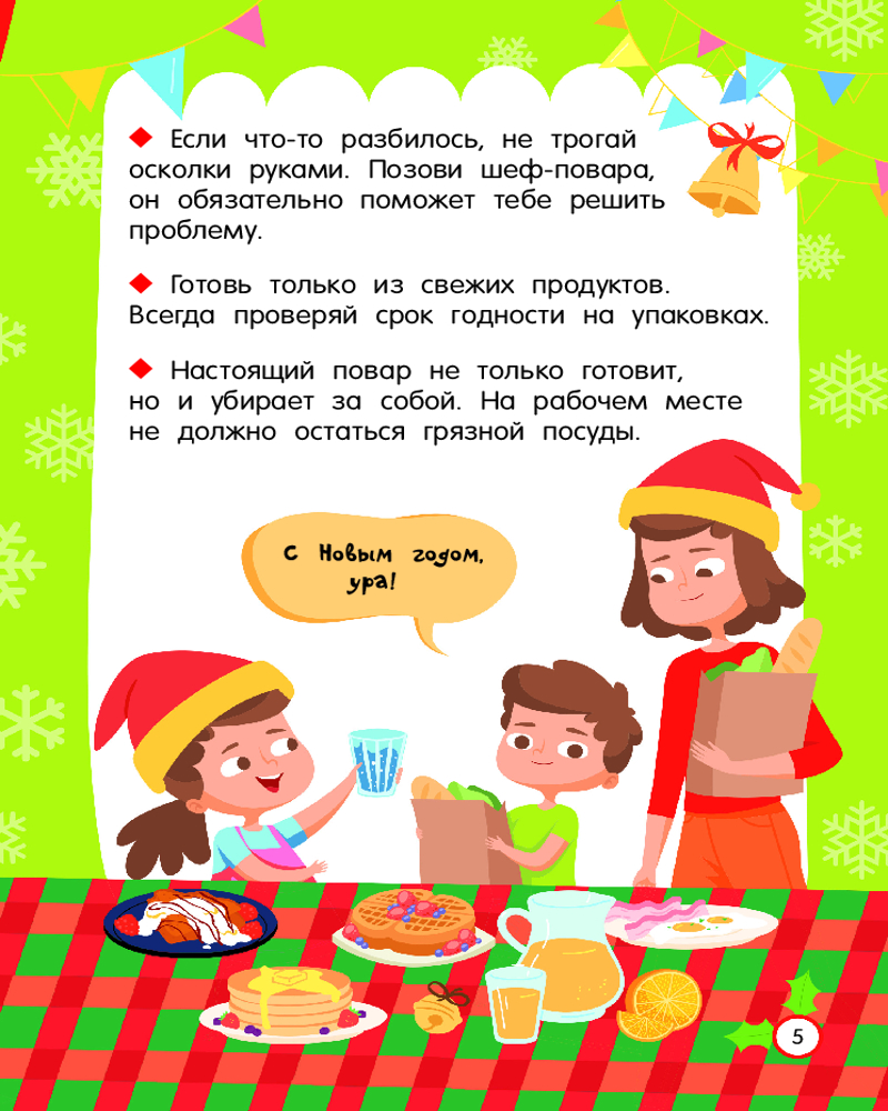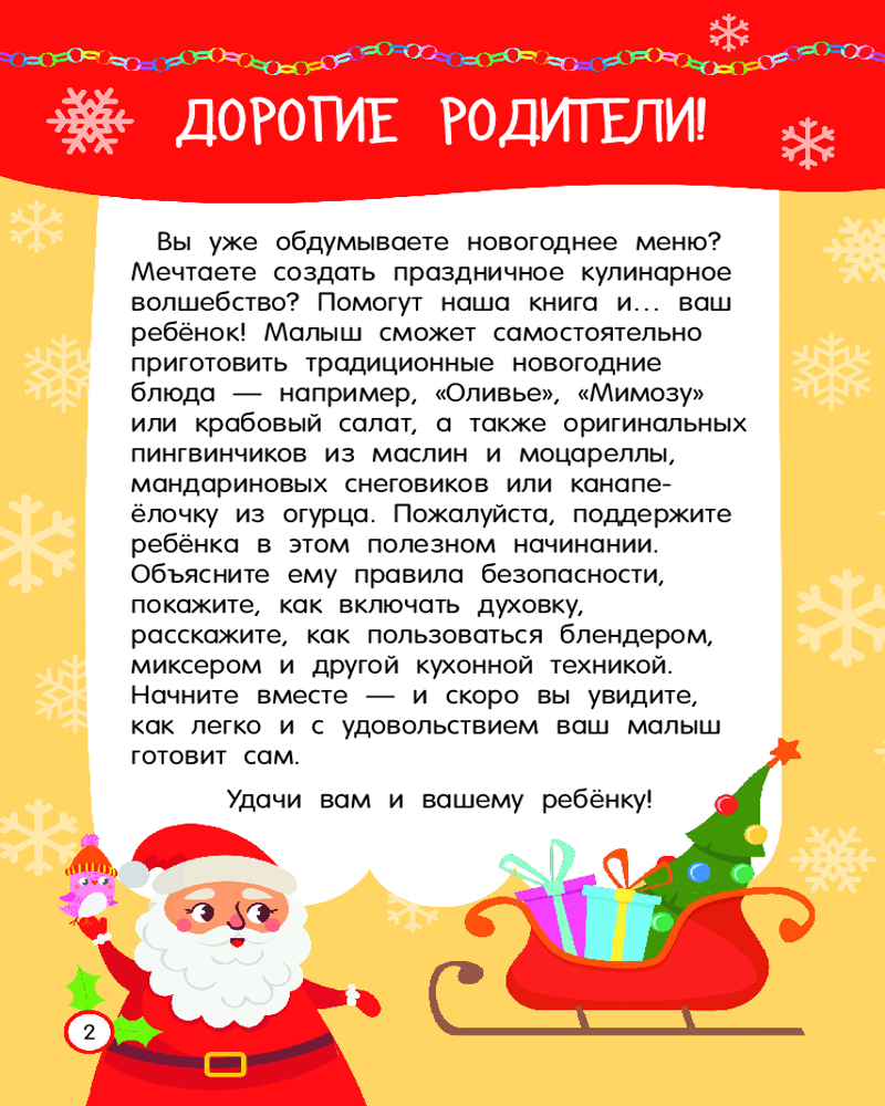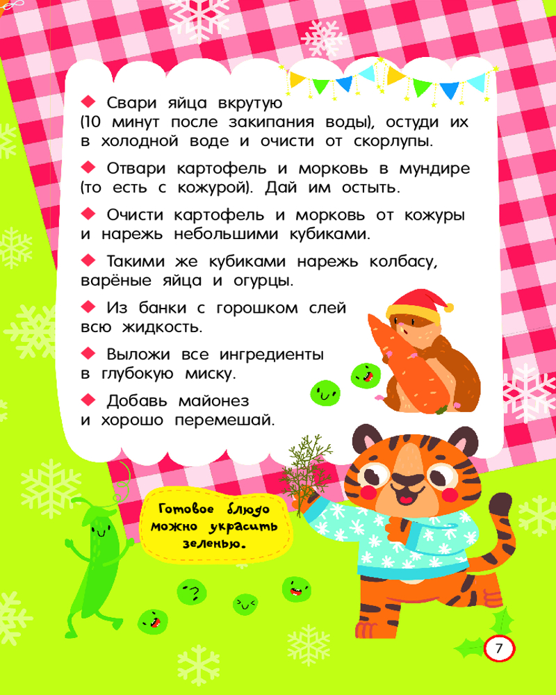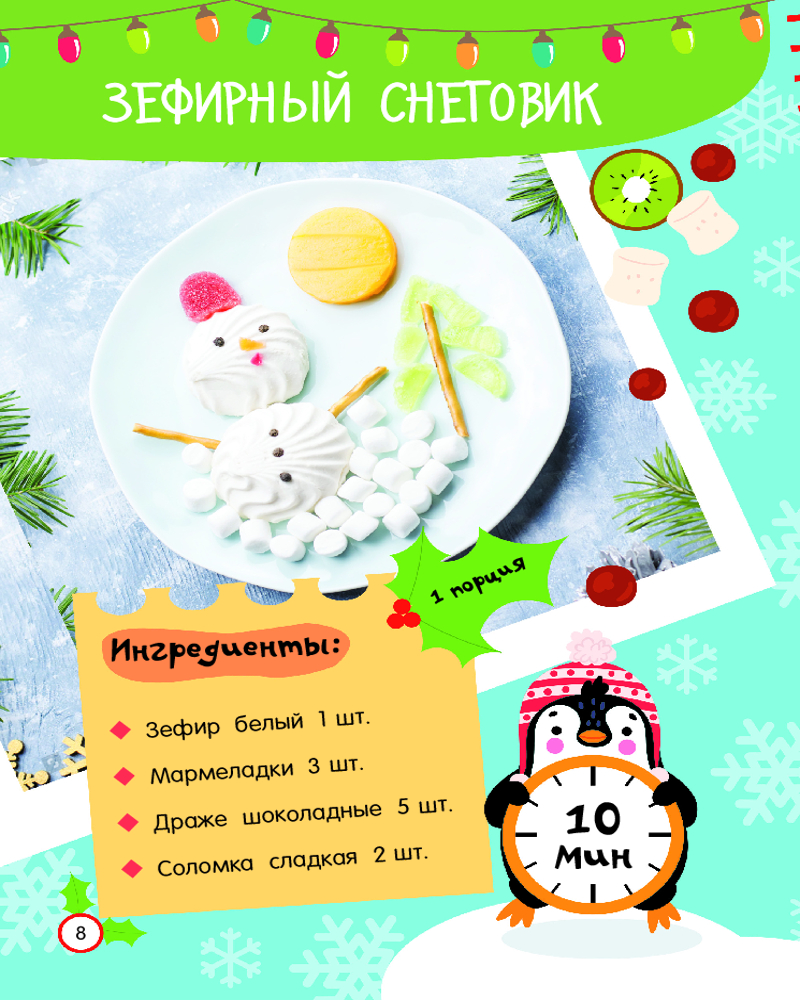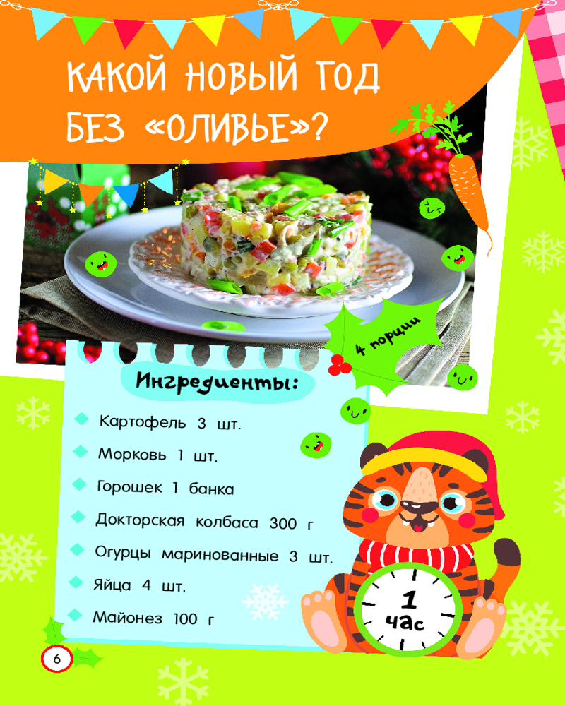 Серия: Просто удобно: книга на спирали Из книги «Новогодние рецепты: готовлю сам без мамы» ребёнок узнает, как самостоятельно приготовить традиционный салат «Оливье», канапе-ёлочку из огурца, мандаринового снеговика, пингвинчика из маслин и моцареллы, а также много-много других новогодних блюд. Есть пошаговые инструкции-рисунки, доступные объяснения и красочные фотографии готовых кулинарных шедевров. Книга удобна в использовании — благодаря спирали страницы легко перекидываются из стороны в сторону, открываясь на 360 градусов. Книга подойдёт в подарок и девочке, и мальчику младшего школьного возраста. |
