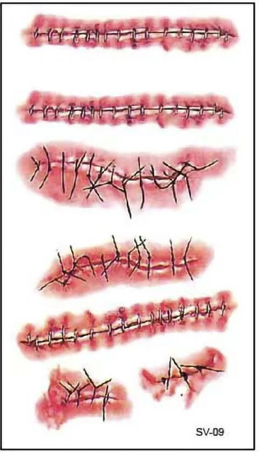 • реалистичный эффект — выглядит как настоящие зашитые раны и свежие швы;