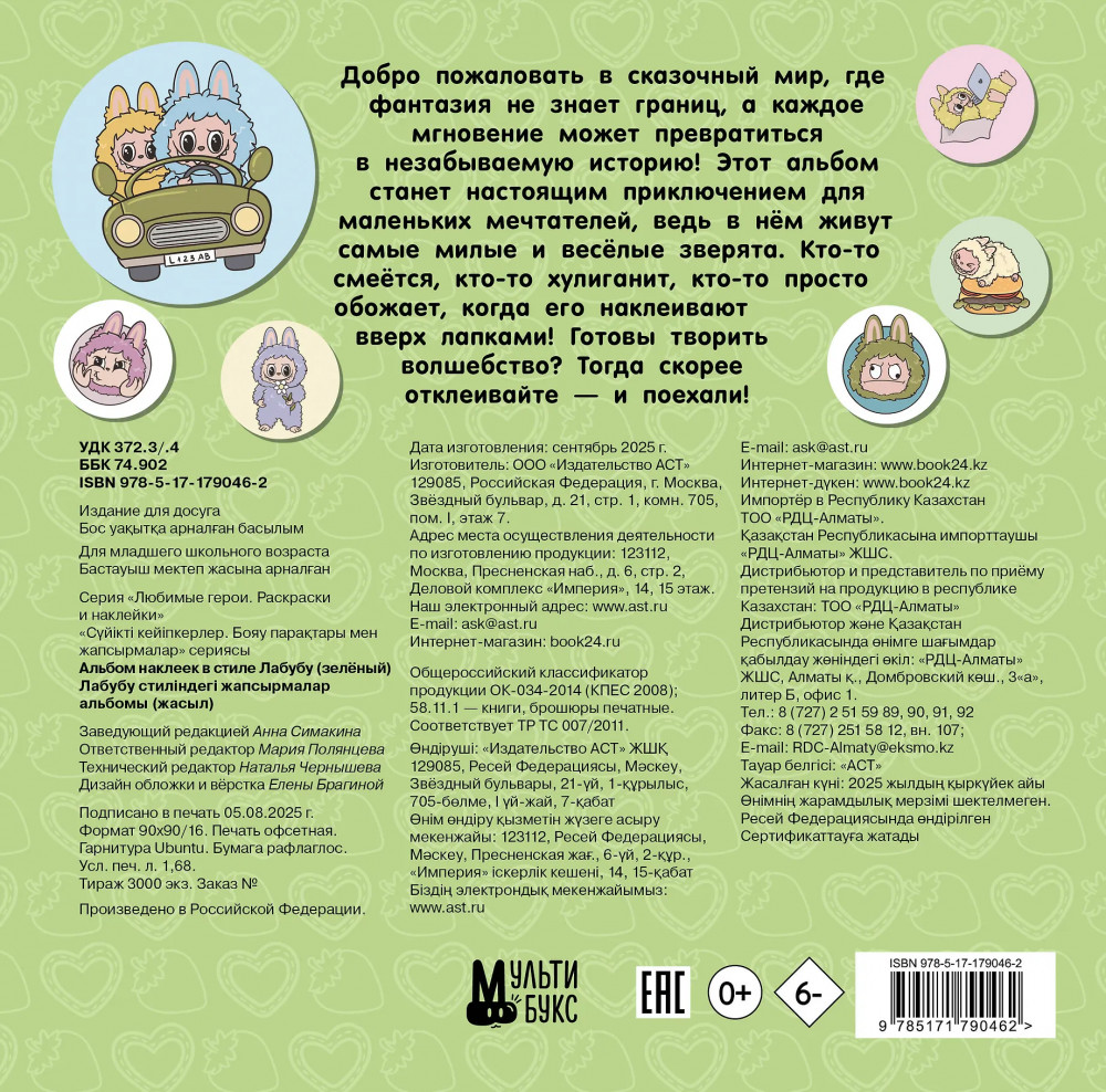 💳 Оплатить за товар можно при получении 🇰🇿 Есть бесплатная доставка по Казахстану от 1 дня 🎁 Копите бонусы с каждой покупки Серия: Любимые герои. Раскраски и наклейки Добро пожаловать в сказочный мир, где фантазия не знает границ, а каждое мгновение может превратиться в незабываемую историю! Этот альбом станет настоящим приключением для маленьких мечтателей, ведь в нём живут самые милые и весёлые зверята. Кто-то смеётся, кто-то хулиганит, кто-то просто обожает, когда его наклеивают вверх лапками! Готовы творить волшебство? Тогда скорее отклеивайте — и поехали! |