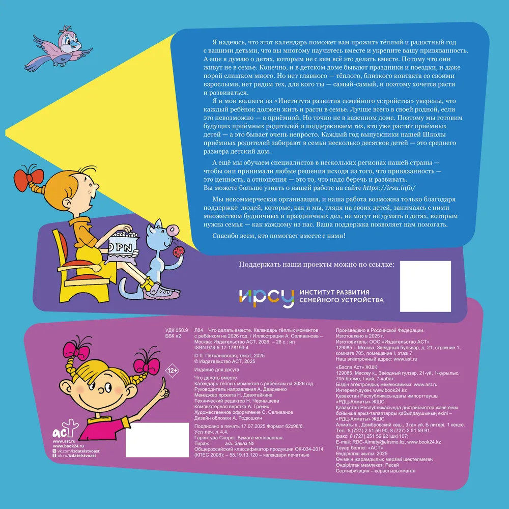 Укрепите семейные отношения: календарь предлагает идеи для совместных занятий, отвлекающих от гаджетов и сближающих вас с детьми. Регулярные совместные активности помогут создать крепкую эмоциональную связь и незабываемые воспоминания.