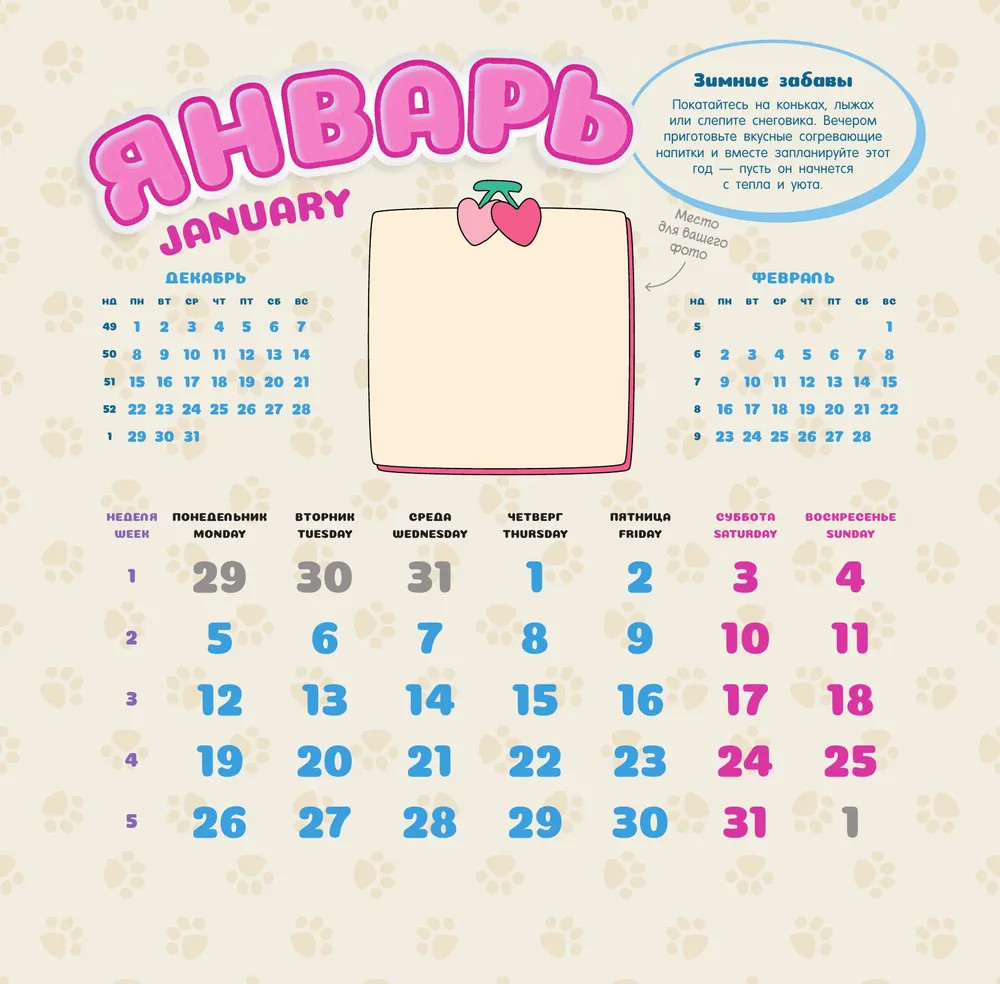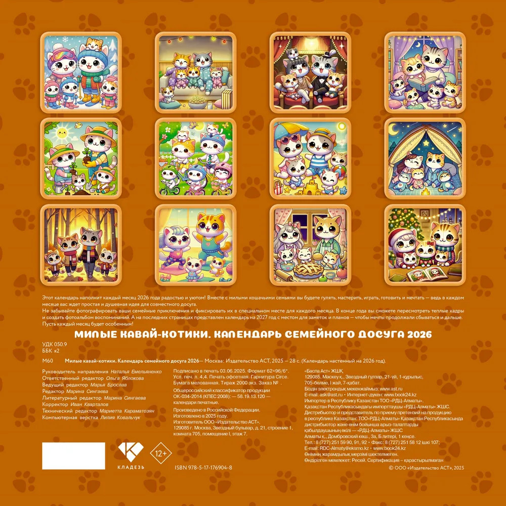 💳 Оплатить за товар можно при получении 🇰🇿 Есть бесплатная доставка по Казахстану 🎁 Копите бонусы с каждой покупки Серия: Календарь настенный на 2026 год Этот настенный календарь наполнит каждый месяц 2026 года радочтью и иуютом! Вместе с милыми кошачьими семьями вы будете гулять, мастерить, играть, готовить и мечтать — ведь в каждом месяце вас ждет простая и душевная идея для совместного досуга. |