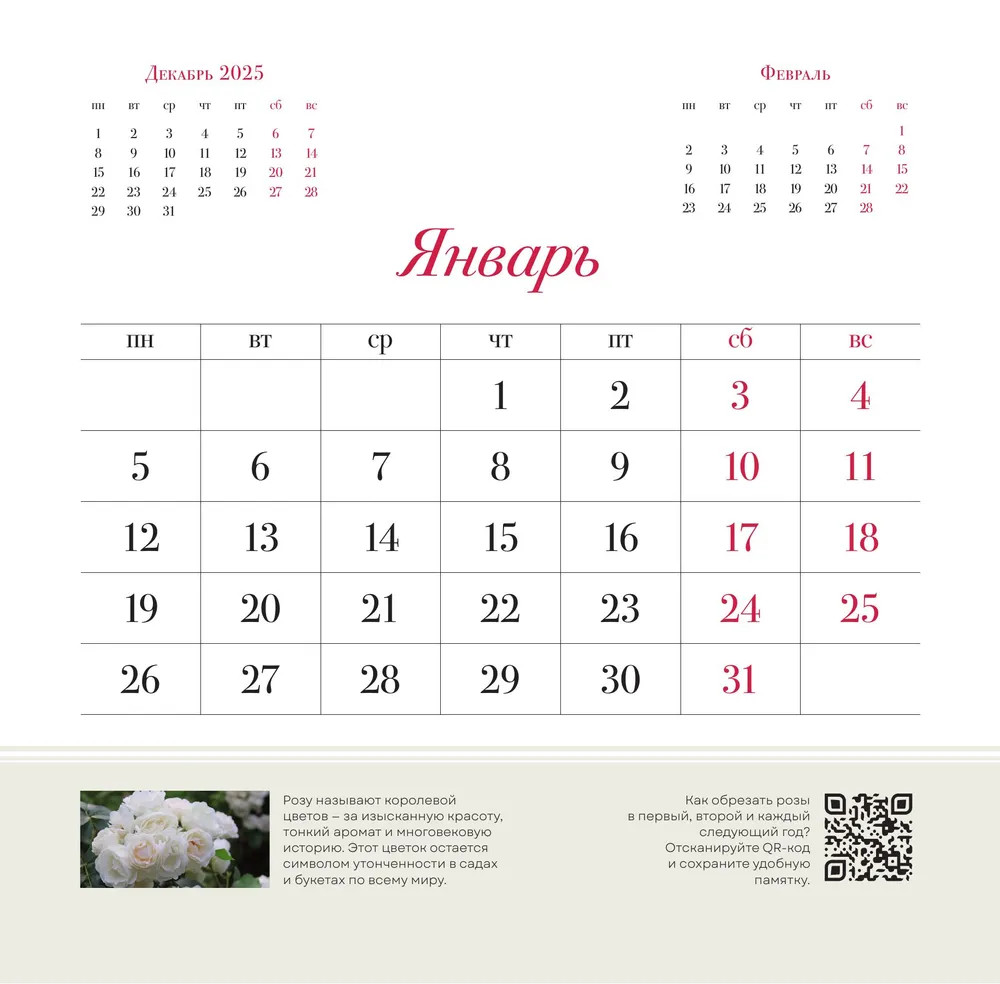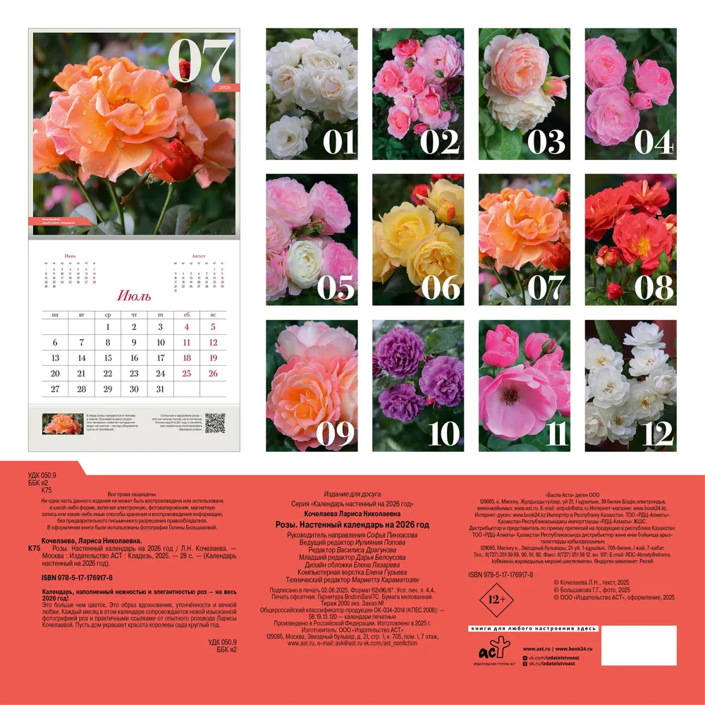 Серия: Календарь настенный на 2026 год Календарь, наполненный нежностью и элегантностью роз — на весь 2026 год! Это больше, чем цветок. Это образ вдохновения, утончённости и вечной любви. Каждый месяц в этом календаре сопровождается новой изысканной фотографией роз и практичными ссылками от опытного розовода Ларисы Кочелаевой. Пусть дом украшает красота королевы сада круглый год. |