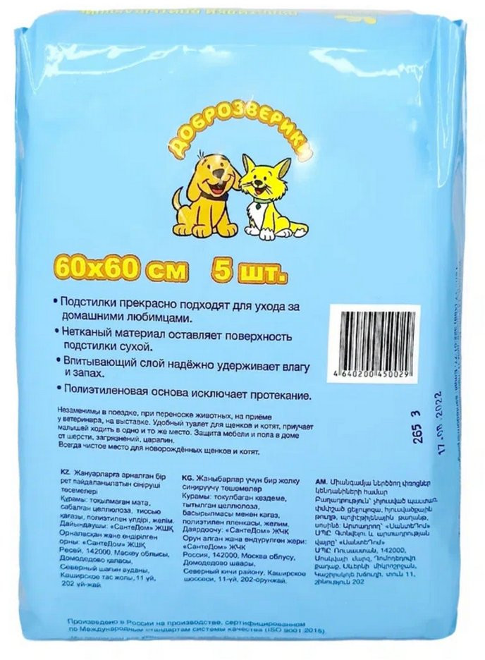 Доброзверики Подстилки впитывающие одноразовые для животных