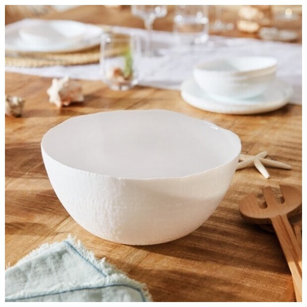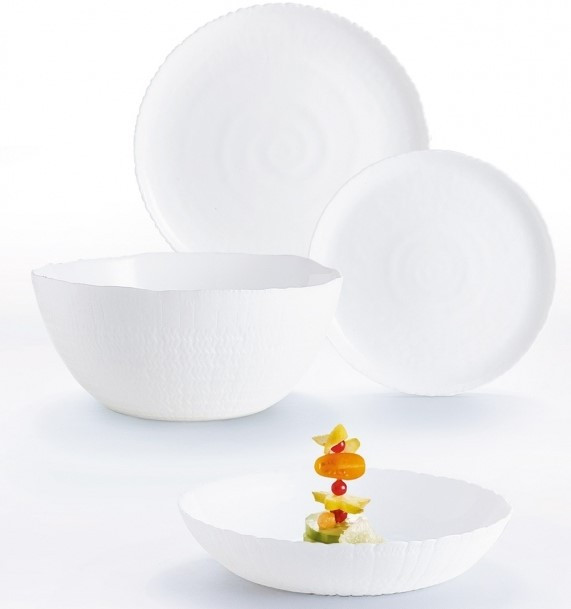 От идеальных штампованных форм к посуде ручной работы — именно так выглядит новая концепция Luminarc Natural Concept. Эти формы и рисунки вдохновлены движением воды и песка. Не нужно спорить с природой — нужно гармонично взаимодействовать. Стеклянный сервиз Luminarc Ammonite выполнен в форме раковины моллюска, неровный край и характерный рельеф — все это красиво сочетается с натуральными поверхностями, тканями, минералами. Используйте светлую мебель из натуральных материалов, циновки из соломки и пальмового листа, салфетки и дорожки грубой фактуры из натуральных волокон.