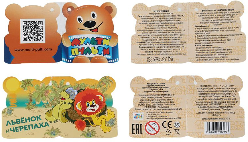 💳 Оплатить за товар можно при получении 🇰🇿 Есть бесплатная доставка по Казахстану от 1 дня 🎁 Копите бонусы с каждой покупки Озвученная мягкая игрушка «Львёнок» ТМ «Мульти-Пульти» станет прекрасным подарком для маленьких поклонников известного мультфильма студии «Союзмультфильм». Малыш будет рад знакомству с таким ярким и очень мягким персонажем с пушистой гривой и хвостом. С этой игрушкой дети смогут воссоздать уже знакомые сюжеты из мультика или придумать новые. Забавный львёнок станет малышу добрым другом, которого можно взять с собой на прогулку или в поездку. Наличие специального кармашка даёт возможность легко ухаживать за игрушкой и быстро заменить батарейки в случае необходимости. Игра с озвученной игрушкой ТМ «Мульти-Пульти» развивает: музыкальный слух, воображение, фантазию, тактильное восприятие и социально-коммуникативные навыки. |