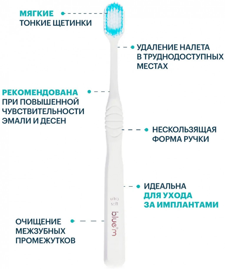 Зубная щетка BlueM для ежедневного ухода разработана для поддержания здоровья всей полости рта. Головка овальной формы и мягкие тонкие щетинки деликатно очищают эмаль, не травмируя мягкие ткани полости рта. Удобная нескользящая ручка и силовой упор уникальной формы помогают более тщательно контролировать процесс чистки зубов. Данная щетка рекомендована: людям с повышенной чувствительностью зубов; при гиперчувствительности эмали; при наличии имплантатов; по прошествии 4-х недель после хирургического вмешательства. Тип щетинок: мягкий. |
