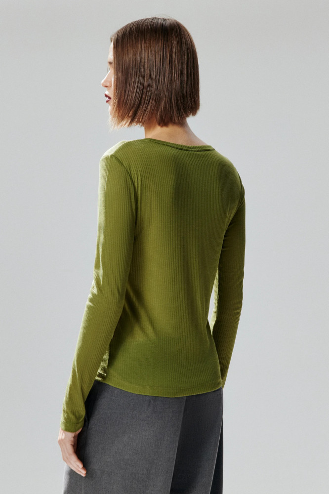 Женский лонгслив приталенного кроя из тонкой полупрозрачной ткани с добавлением вискозы и фактурой в рубчик. Высокий круглый вырез горловины без воротника. Длинные облегающие рукава с прямыми манжетами и спущенной линией плеча. Прямой нижний край без разрезов. Однотонный лонгслив в актуальных расцветках из новой осенней коллекции. Джемпер в рубчик с длинными рукавами для самых женственных, стильных и привлекательных аутфитов. Универсальный и практичный: сочетай его с любым низом и создавай аутфиты, в которых тебе будет максимально комфортно и в которых ты гарантированно не останешься без внимания.