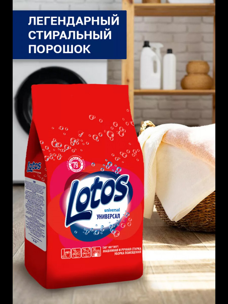 Стиральный порошок Lotos — экологичный, безопасный, универсальный, гипоаллергенный, эффективный. Порошок не вызывает раздражения кожи, аллергии, не оставляет запаха и подходит для стирки детского белья и одежды людей с чувствительной кожей. Порошок подходит для цветного и белого белья, ручной и машинной стирки. Сохраняет цвет и бережно относится к тканям. Эффективно удаляет загрязнения с волокон ткани даже в холодной воде и при коротких циклах стирки. Средство для стирки быстро растворяется в воде и не остается на одежде. Экономичный расход у стирального порошка хозяйственные товары. Стиральный порошок для стиральной машины автомат Лотос легко справиться с любыми видами загрязнений, сохранив волокна ткани целыми и невредимыми.