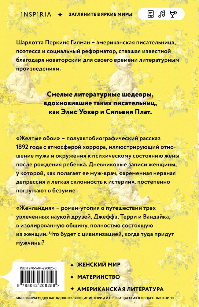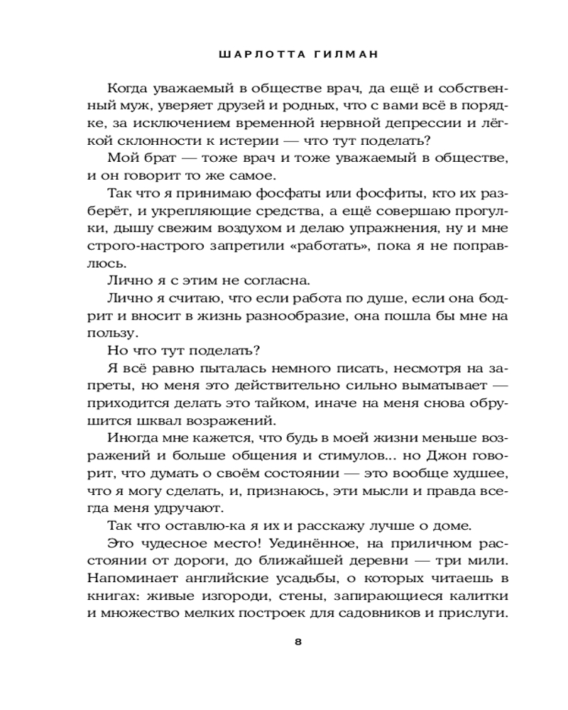 Серия: Loft. Свобода, равенство, страсть «Желтые обои» — рассказ американской писательницы Шарлотты Перкинс Гилман, впервые опубликованный в январе 1892 года в журнале «Новая Англия». Роман считается важным ранним произведением американской женской литературы об отношении к здоровью женщин в XIX веке. Его также высоко оценивают как произведение в жанре ужасов. |