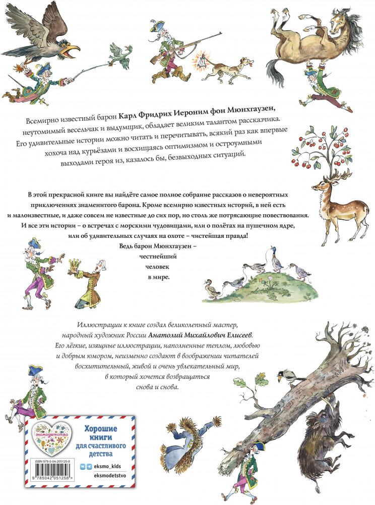 Серия: Золотые сказки для детей Подарочное издание «Приключений барона Мюнхгаузена» в большом формате — эта книга сразу приковывает внимание. Твёрдый переплёт украшен глянцевым лаком и красной фольгой, что делает её настоящей жемчужиной любой библиотеки. |