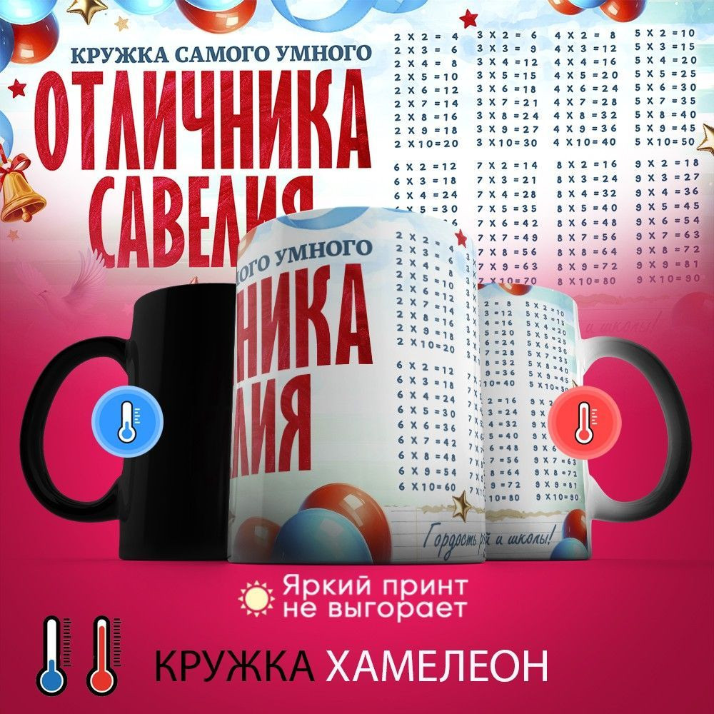 TopPoshiv Кружка хамелеон с принтом «Кружка отличника Савелия»-20% +20
